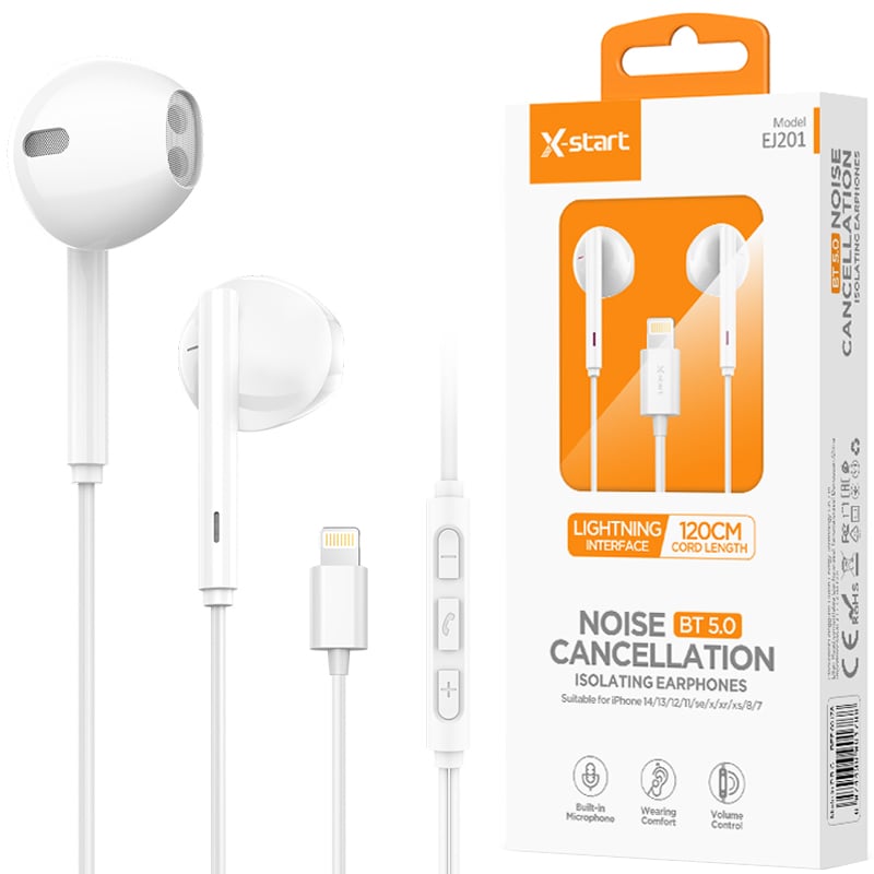 Casti cu Cablu Lightning 120cm, X-Start EJ201, Compatibile iPhone, Microfon si Control volum, Alb Engros