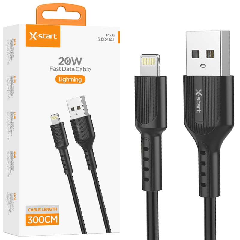 Cablu USB-Lightning, Lungime 3 Metri, X-Start, Compatibil iPhone, Transfer Date si Putere 20W, Negru Engros