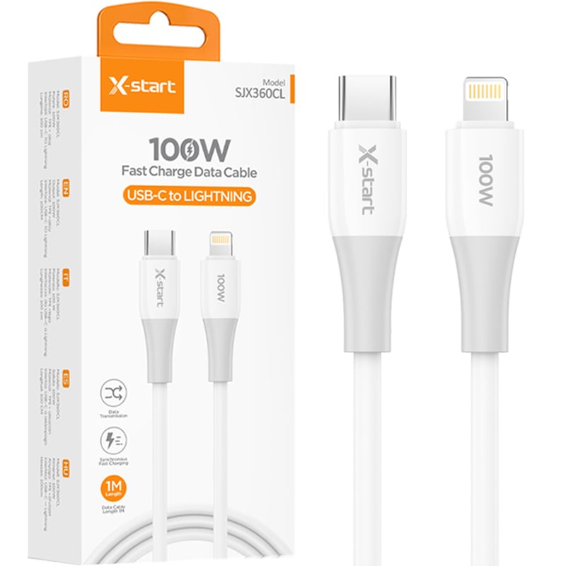 Cablu X-Start SJX360CL, Type-C la Lightning, 1M, Compatibil iPhone, Transfer Date si Putere 100W, Alb Engros