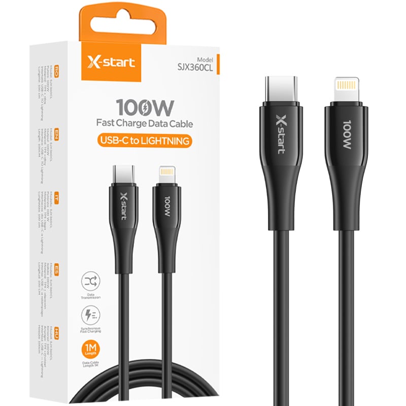 Cablu X-Start SJX360CL, Type-C la Lightning, 1M, Compatibil iPhone, Transfer Date si Putere 100W, Negru Engros