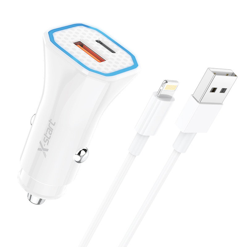 Set Incarcator Auto X-Start CC116L cu Cablu Lightning 1M, Incarcare rapida 38W, Alb Engros