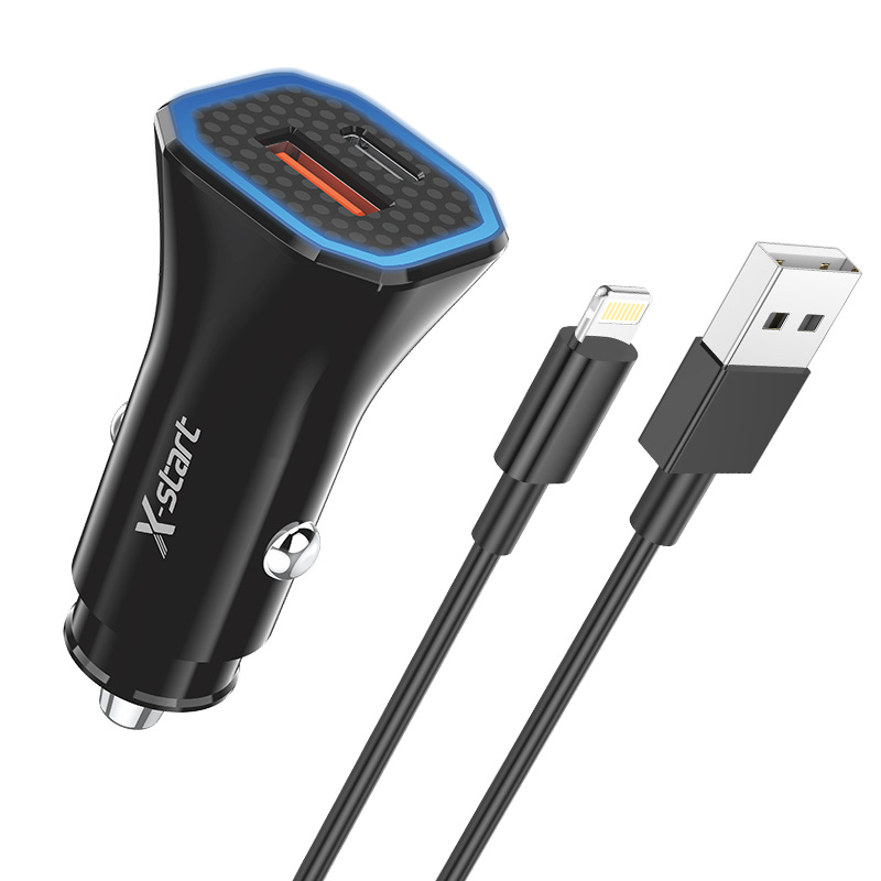 Set Incarcator Auto X-Start CC116L cu Cablu Lightning 1M, Incarcare rapida 38W, Negru Engros