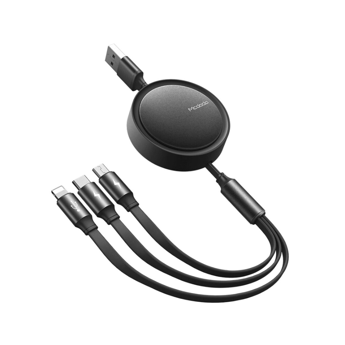 Cablu Lightning engross & MicroUSB & Type-C 3 in 1 Retractable Black, cablu telefon, cablu incarcare, cablu iphone
