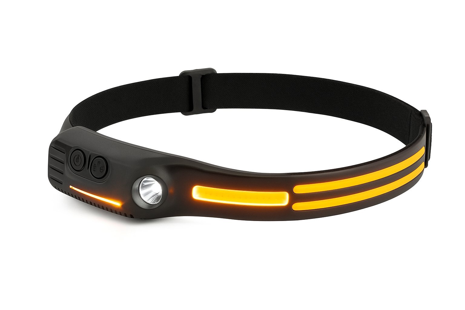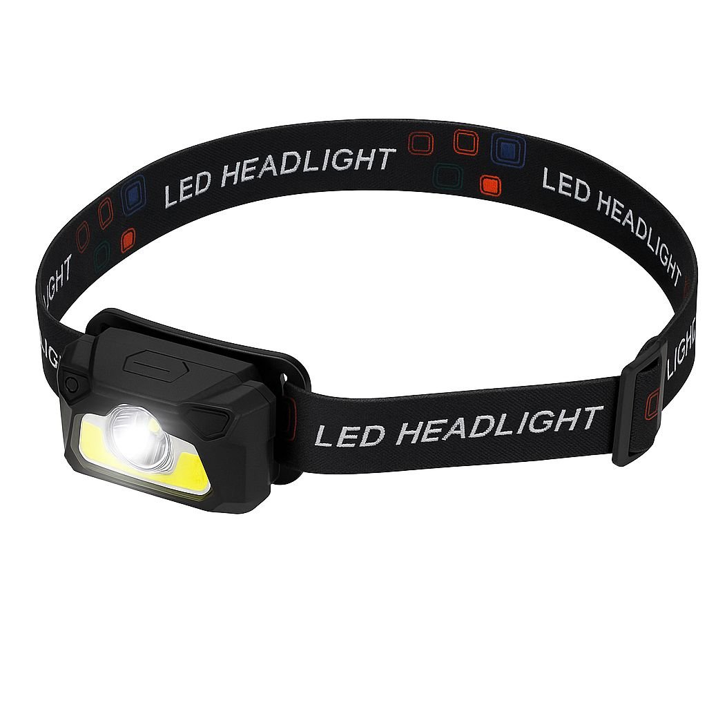 Lanterna Frontala LED cu Banda Elastica Reglabila – Lumina Puternica COB, USB Reincarcabila, Senzor Miscarare – Camping, Pescuit, Uz Tehnic – Engros