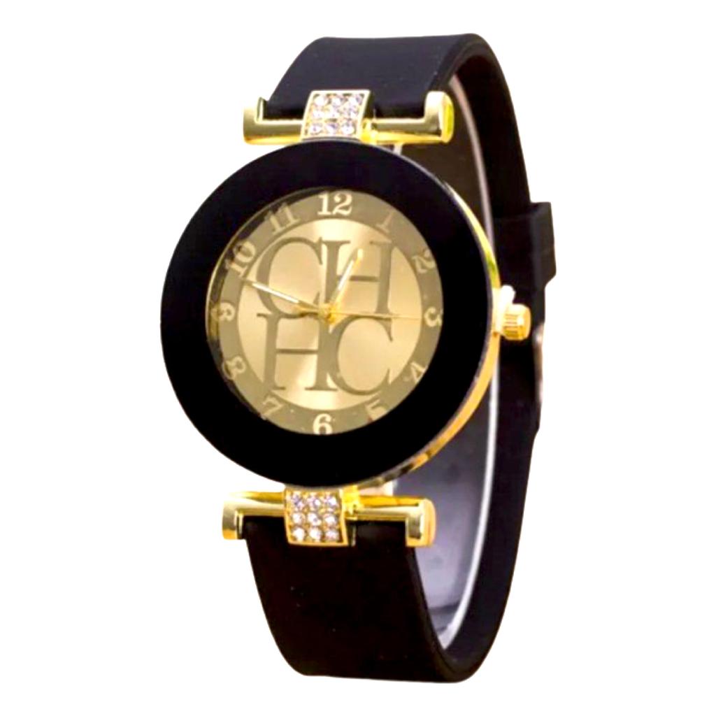 Ceas de Dama, Model Geneva, Silicon, Negru/Auriu Engros