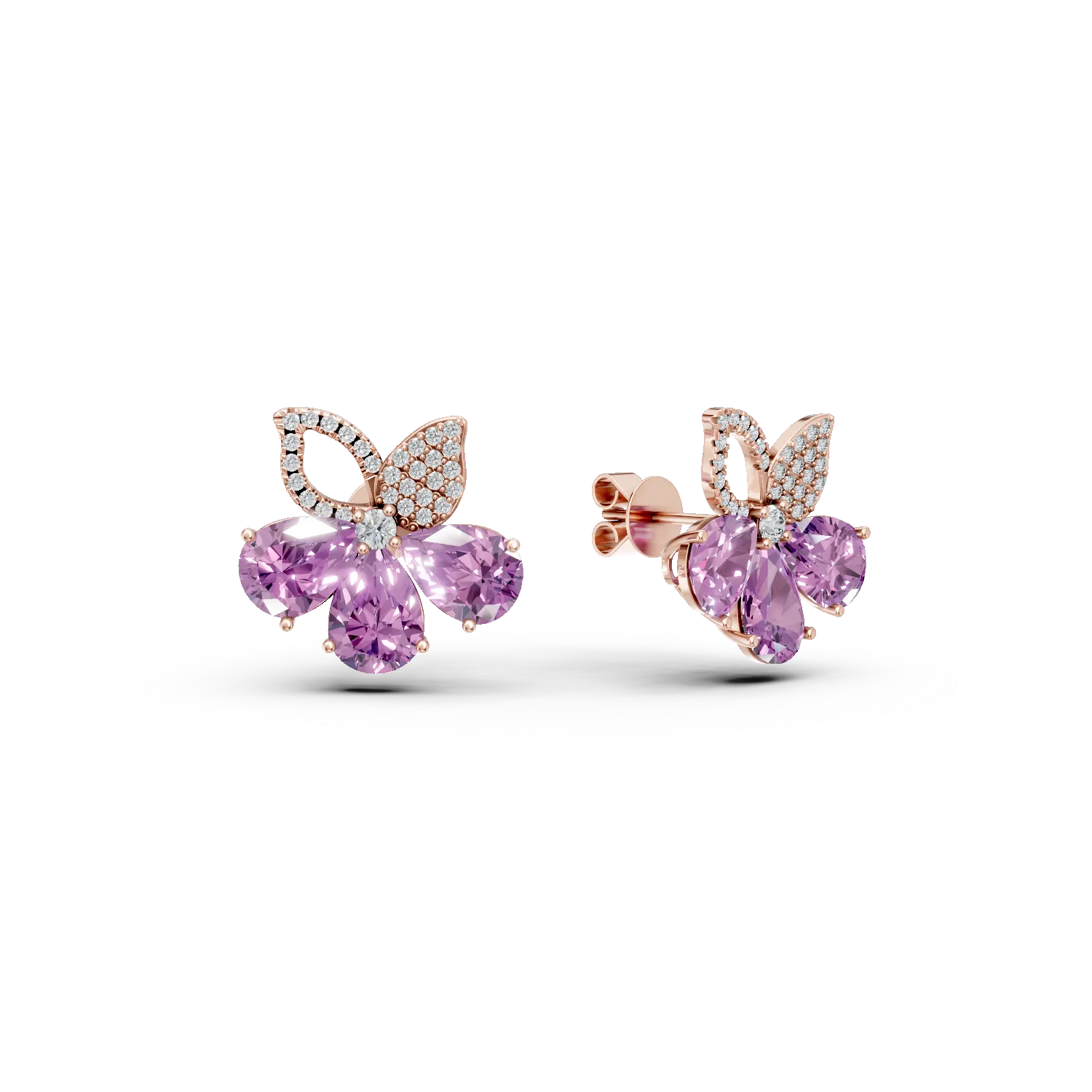 Cercei floare din aur roz cu ametiste pear de 5.9ct si diamante de 0.4ct
