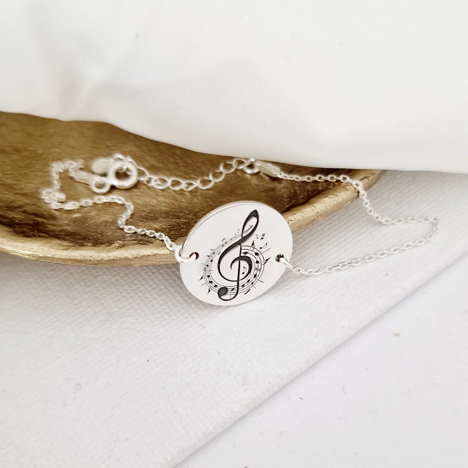 Bratara banut personalizat - Cheia sol - portativ si note muzicale - Argint 925