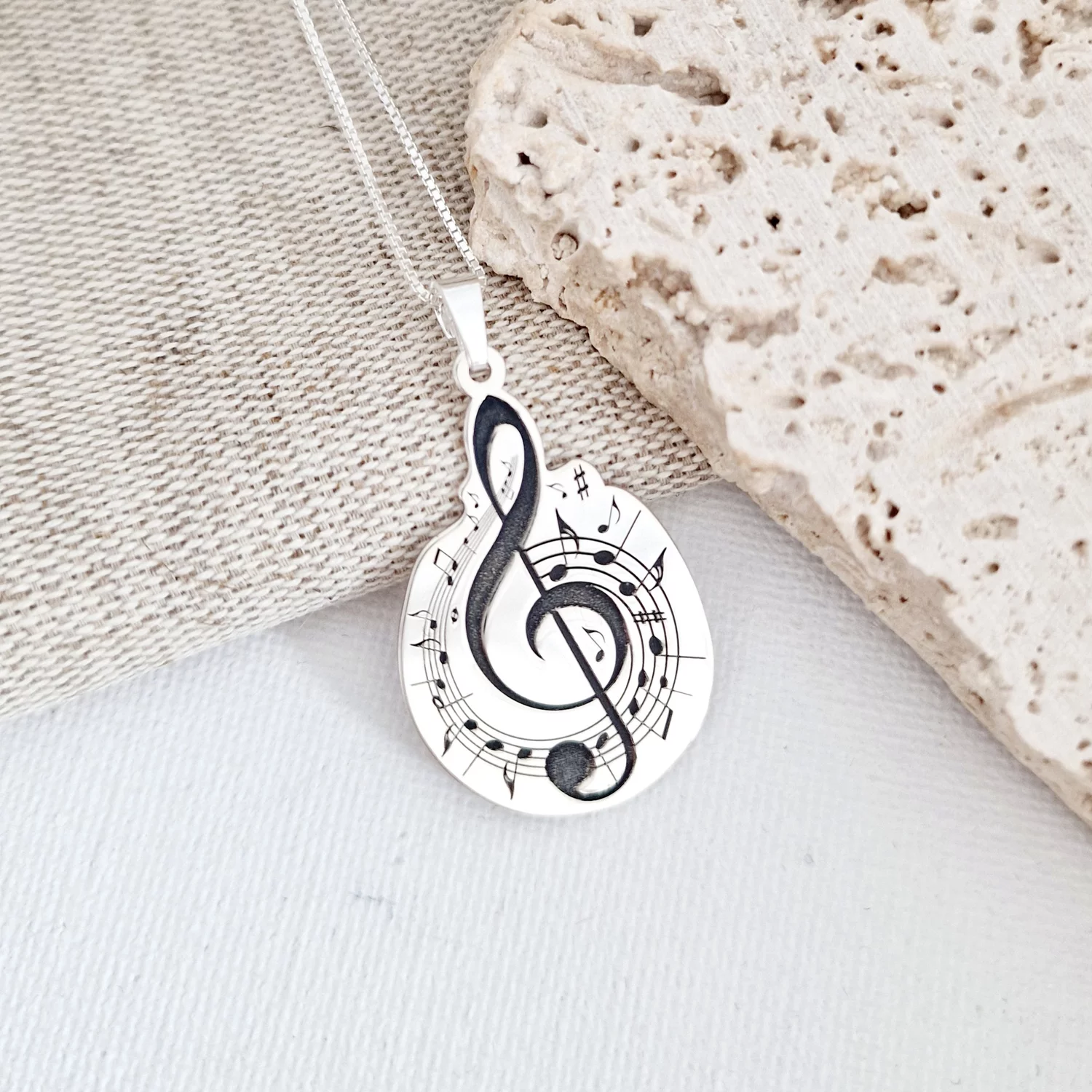 Lantisor personalizat - Cheia Sol cu portativ si note muzicale - Argint 925