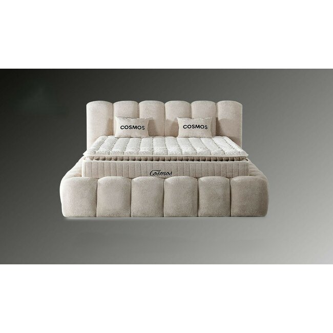 Pat tapițat cu Saltea Gratis, Cosmos 180x200 cm crem cu somieră rabatabilă, ladă depozitare