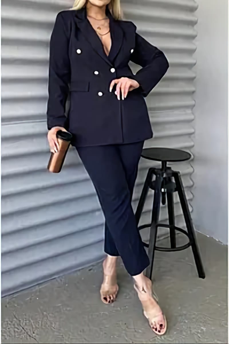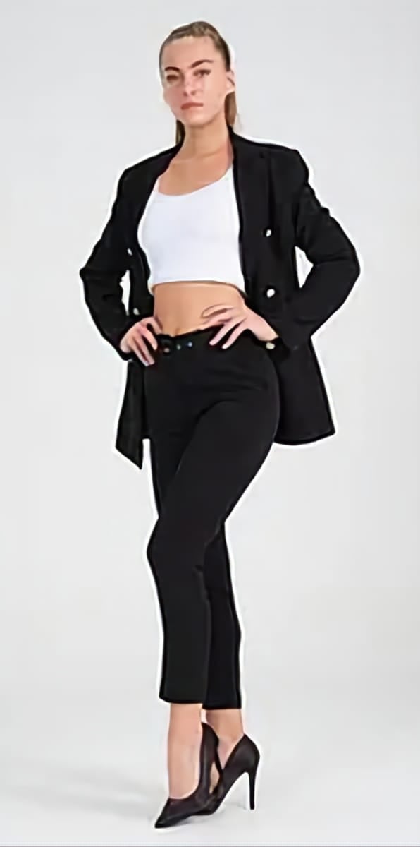 Costum de dama ReBELLA, cu sacou asimetric, decupat si pantaloni midi cu pense, Negru, Marime S/M
