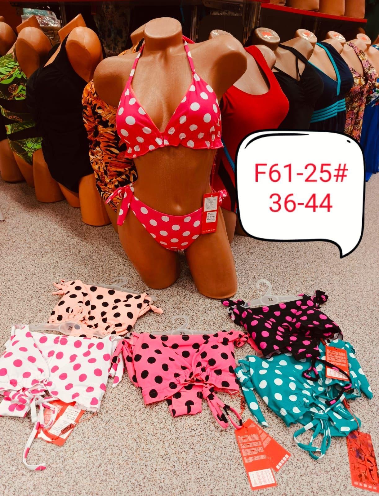 Costum de baie FEMEI, 2 piese, Slip lat , Sutien cu bretele detasabile si burete, Engross, Marimi 42-50, 5bc/serie, Roz buline