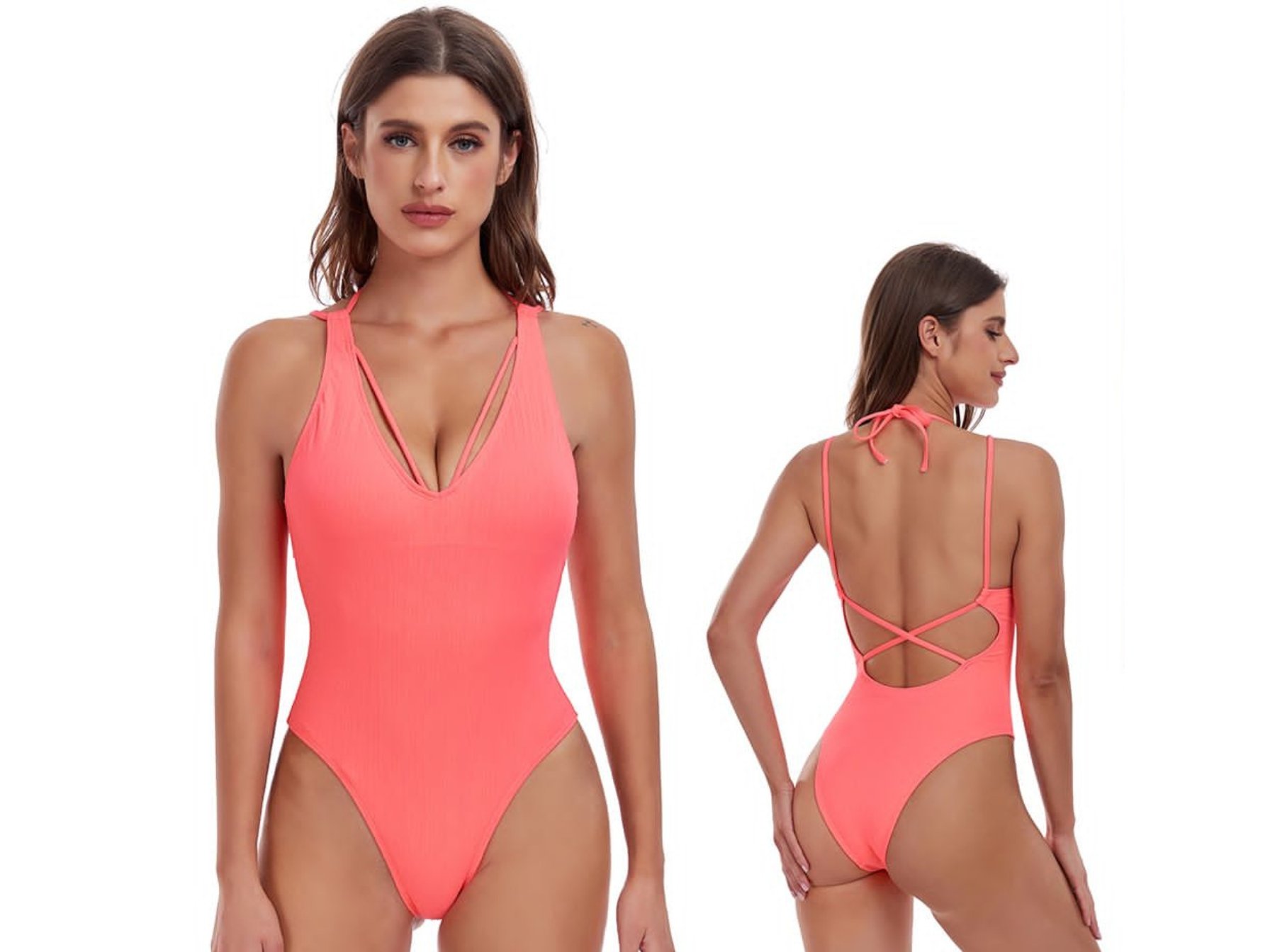 Costum de baie intreg, fara burete, Model vara 2025, Engross, Marimi 36-44, 5buc/serie, Corai