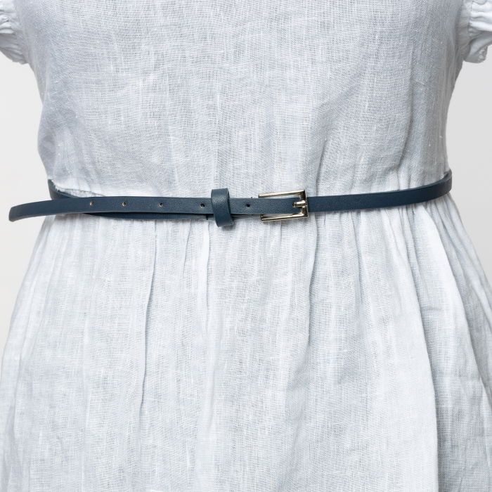 Curea subtire bleumarin de 0.9 cm, din piele ecologica cu catarama metalica argintie dreptunghiulara