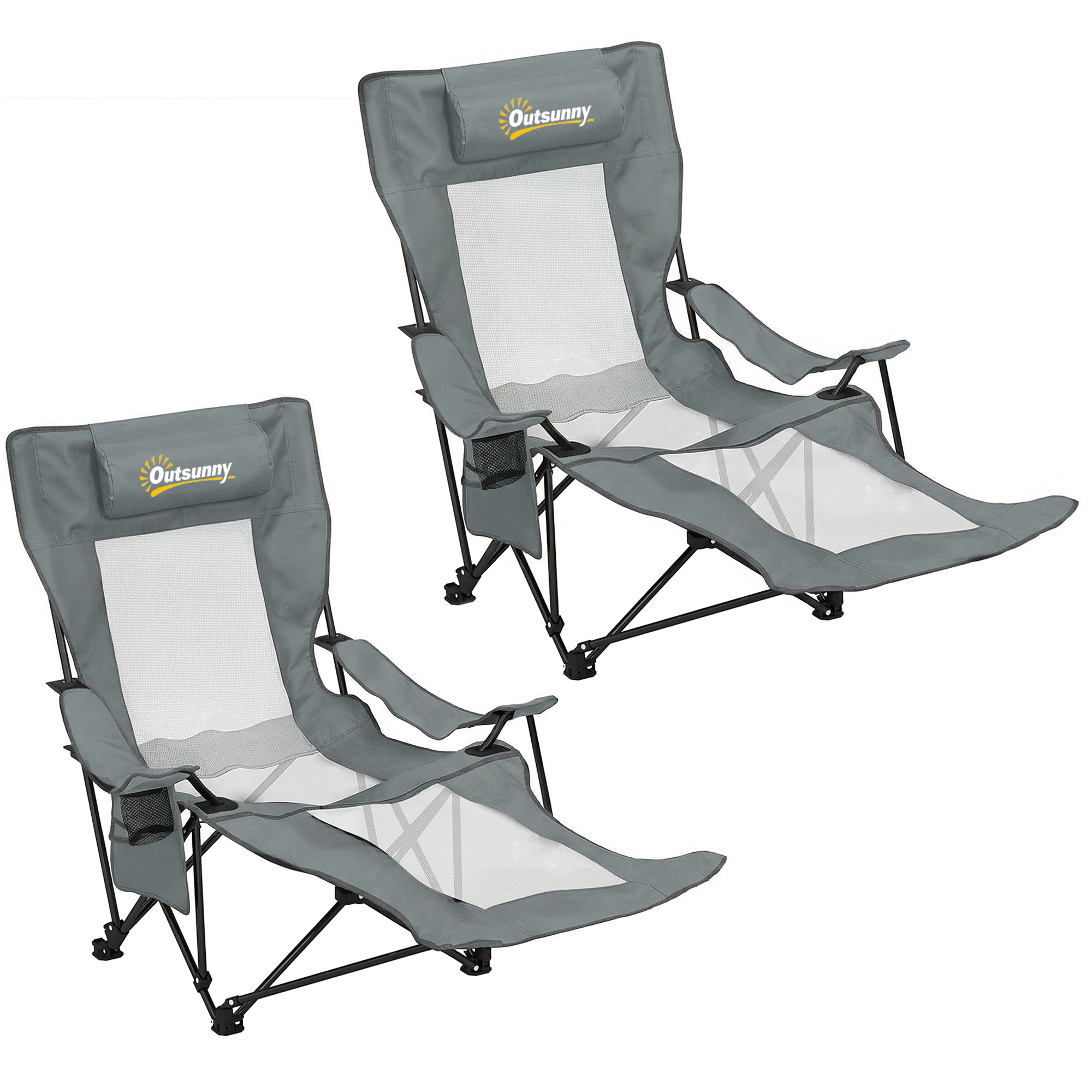 Outsunny Set de 2 scaune de camping pliante înclinate 4 poziții, suport picioare detașabil, suport pahar, 165x80x90cm, Gri | Aosom Romania