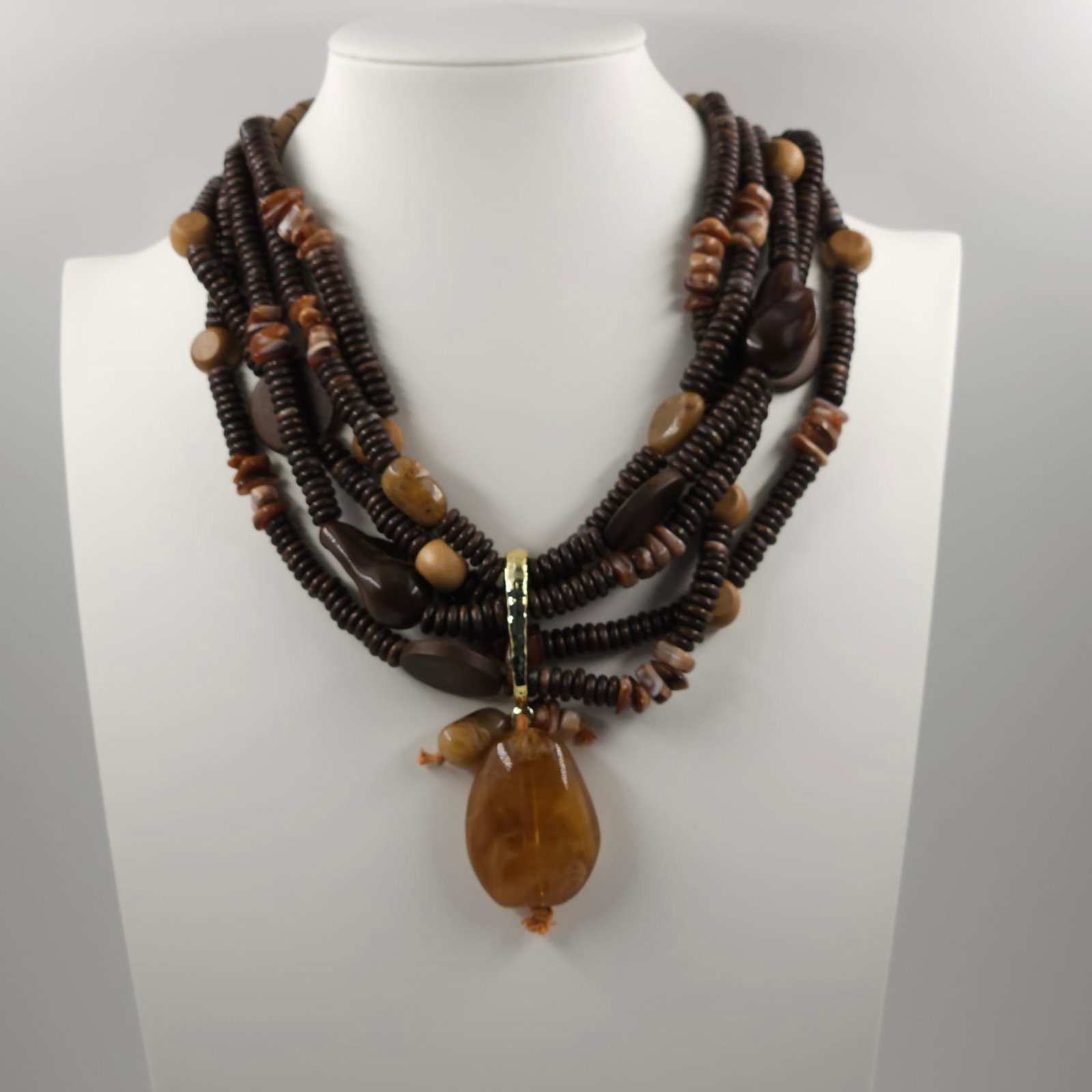 Colier statement in cinci siruri maro cu elemente de diferite forme - stil italian