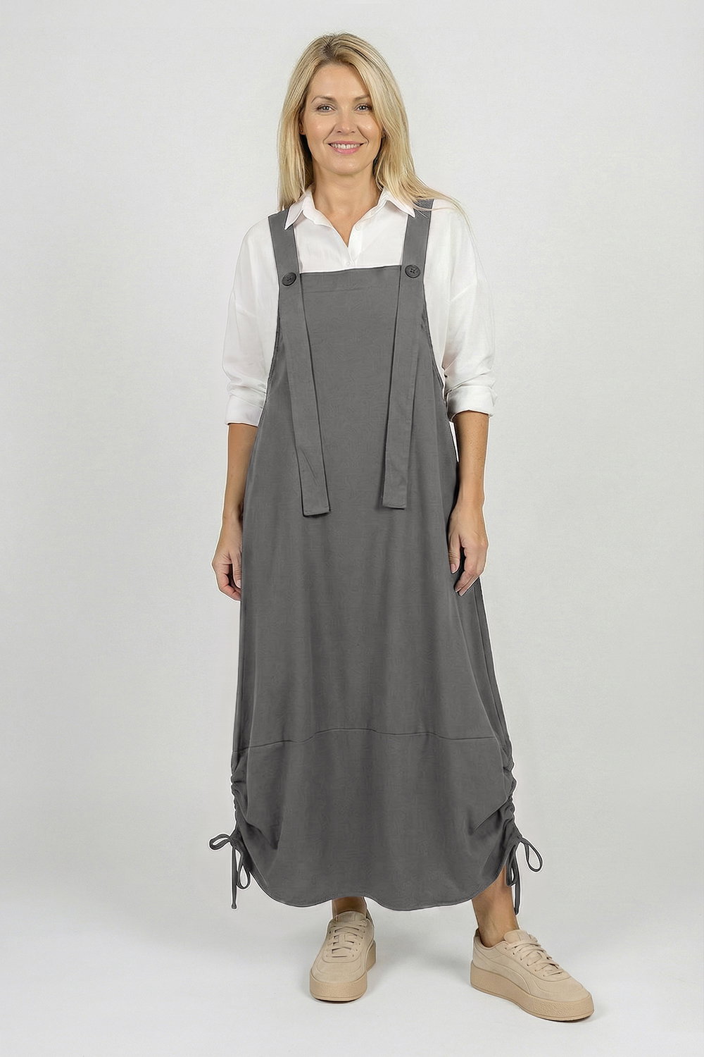 Rochie sarafan lunga cu bretele si snur reglabil, din jerseu de bumbac, gri deschis Talie unica