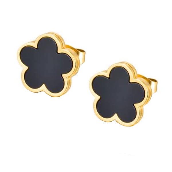 Cercei Flori cu decor negru, Inchizatoare surub, pentru Femei, Fashion, Auriu Engros