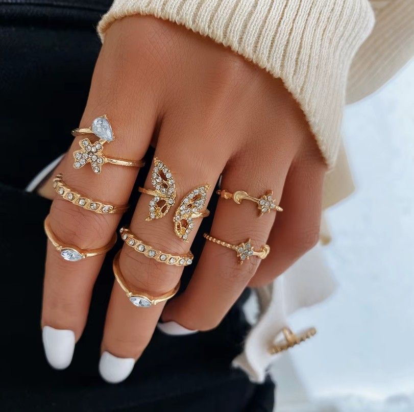 Set 23 inele Crystal butterfly, pentru Femei, Aspect Fashion, Stainless-steel, Auriu Engros
