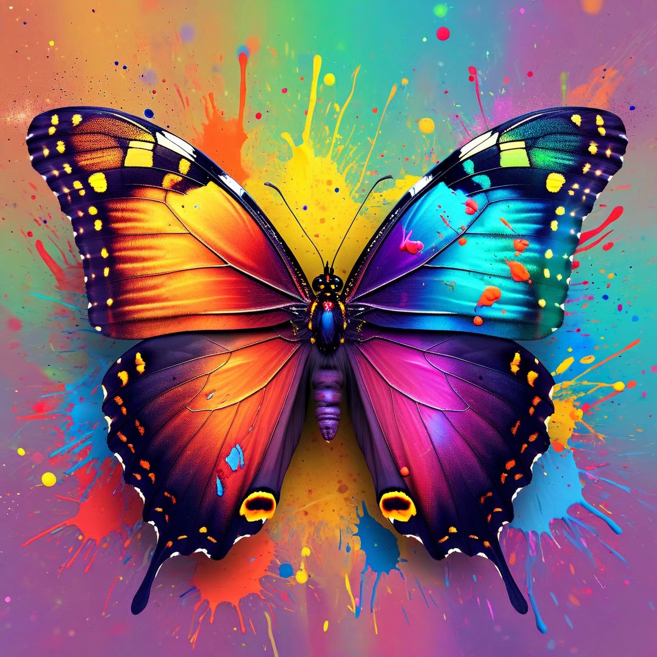 Brosa Martisor 5 cm, Fluture multicolor cu cristale, in cutie 9x9 cm cu fereastra, cadou 1 Martie