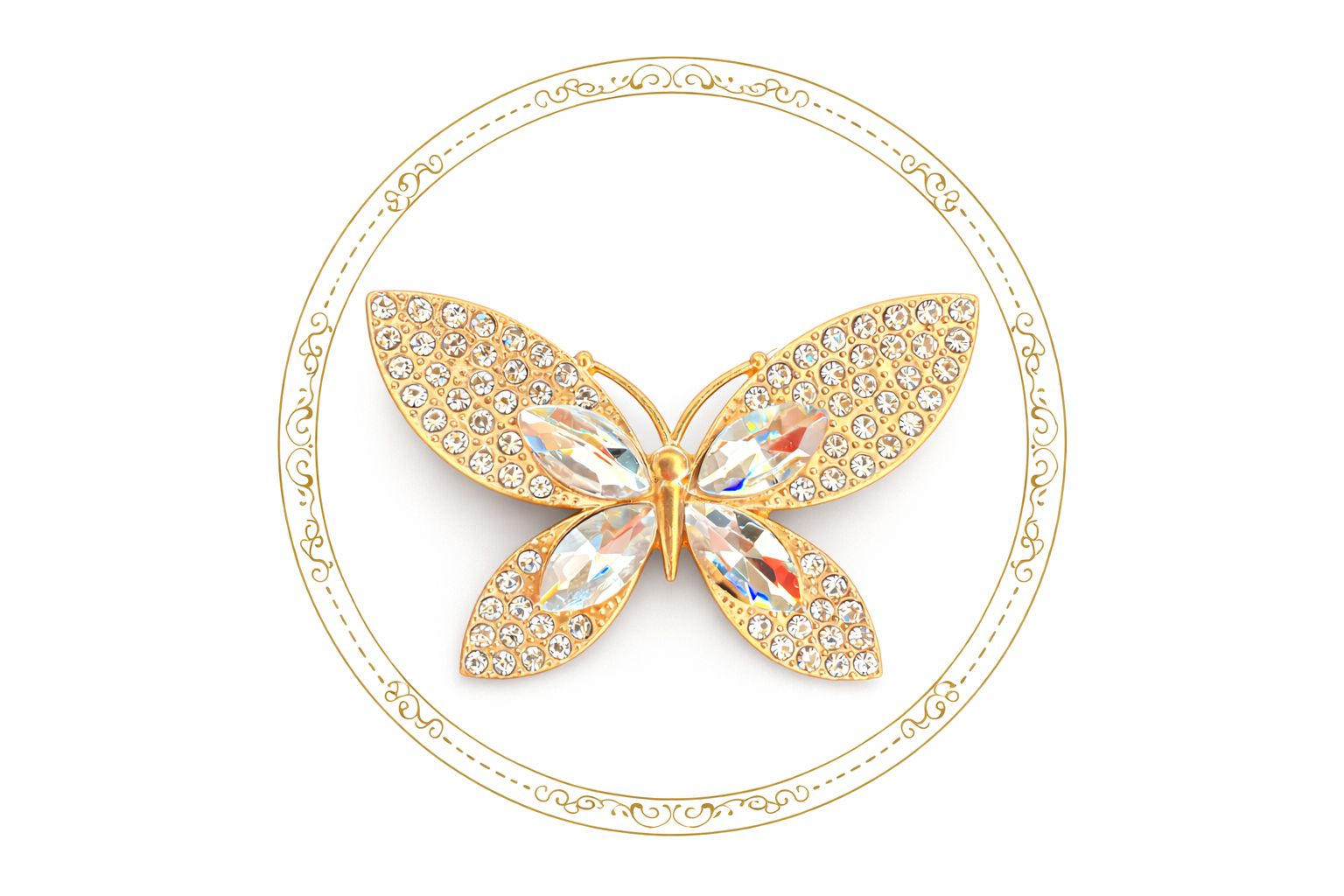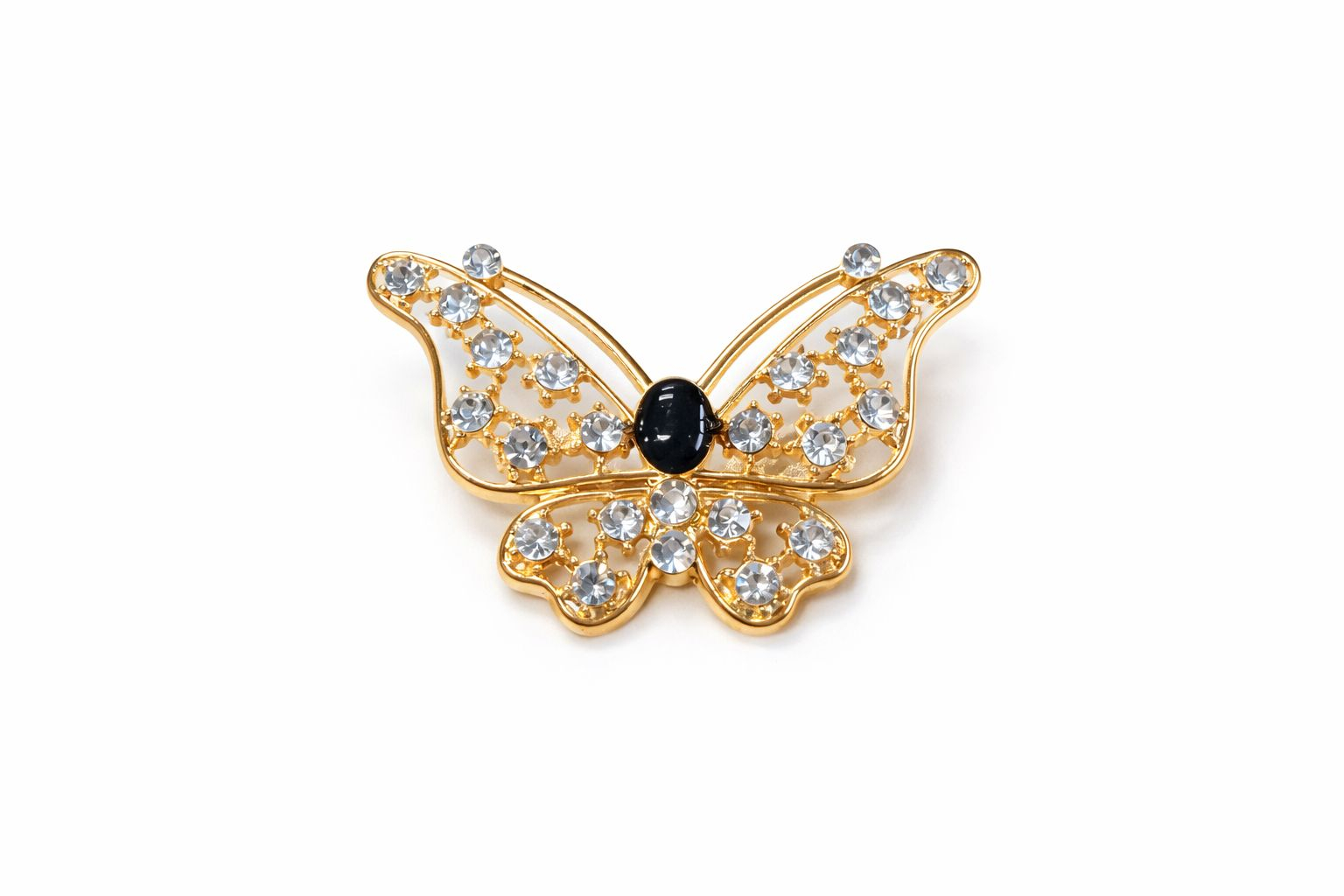 Brosa fluture 4x3 cm, finisaj auriu cu pietre sau filigran, cadou primavara elegant