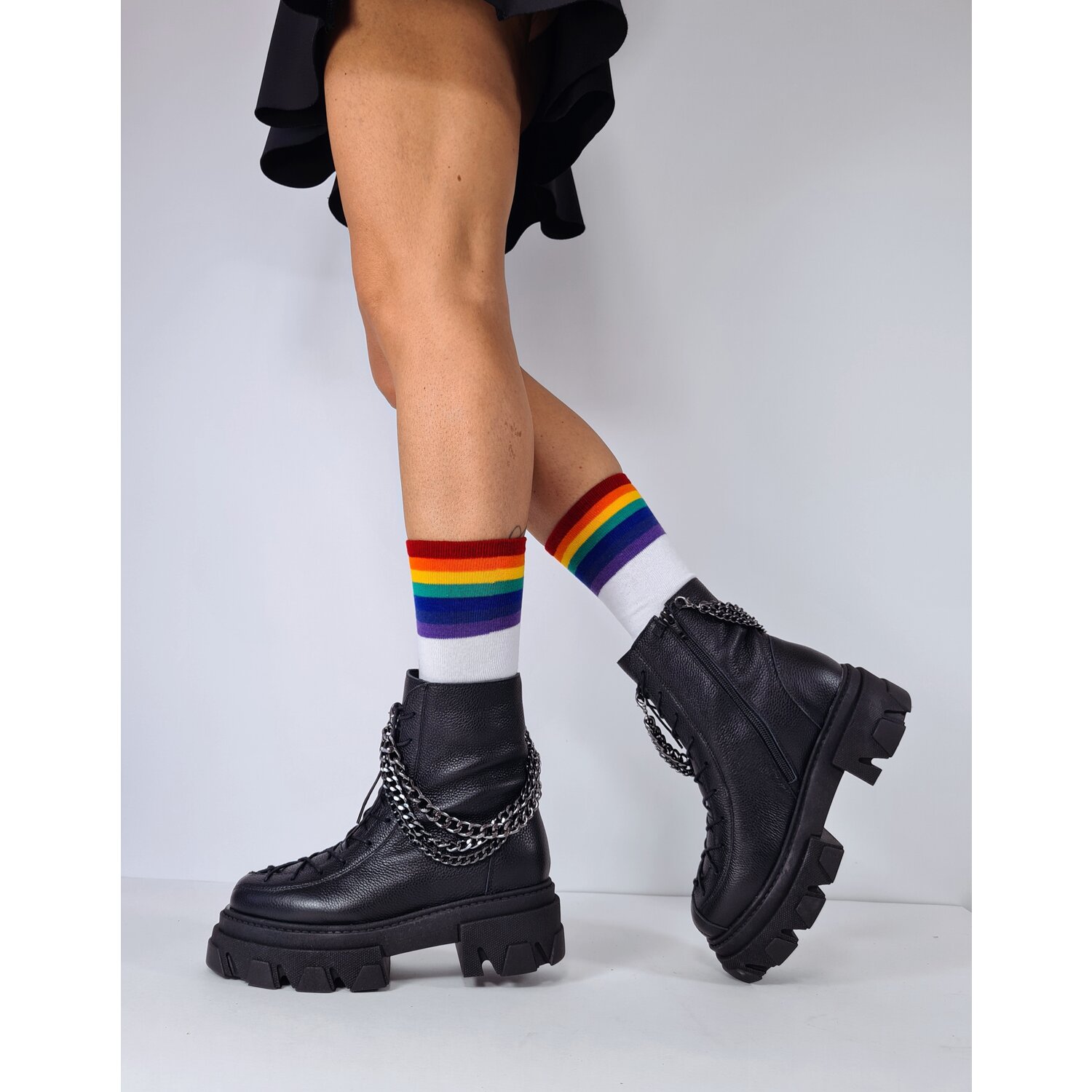 Ghete dama Piele Naturala Negre cu lanturi Relly