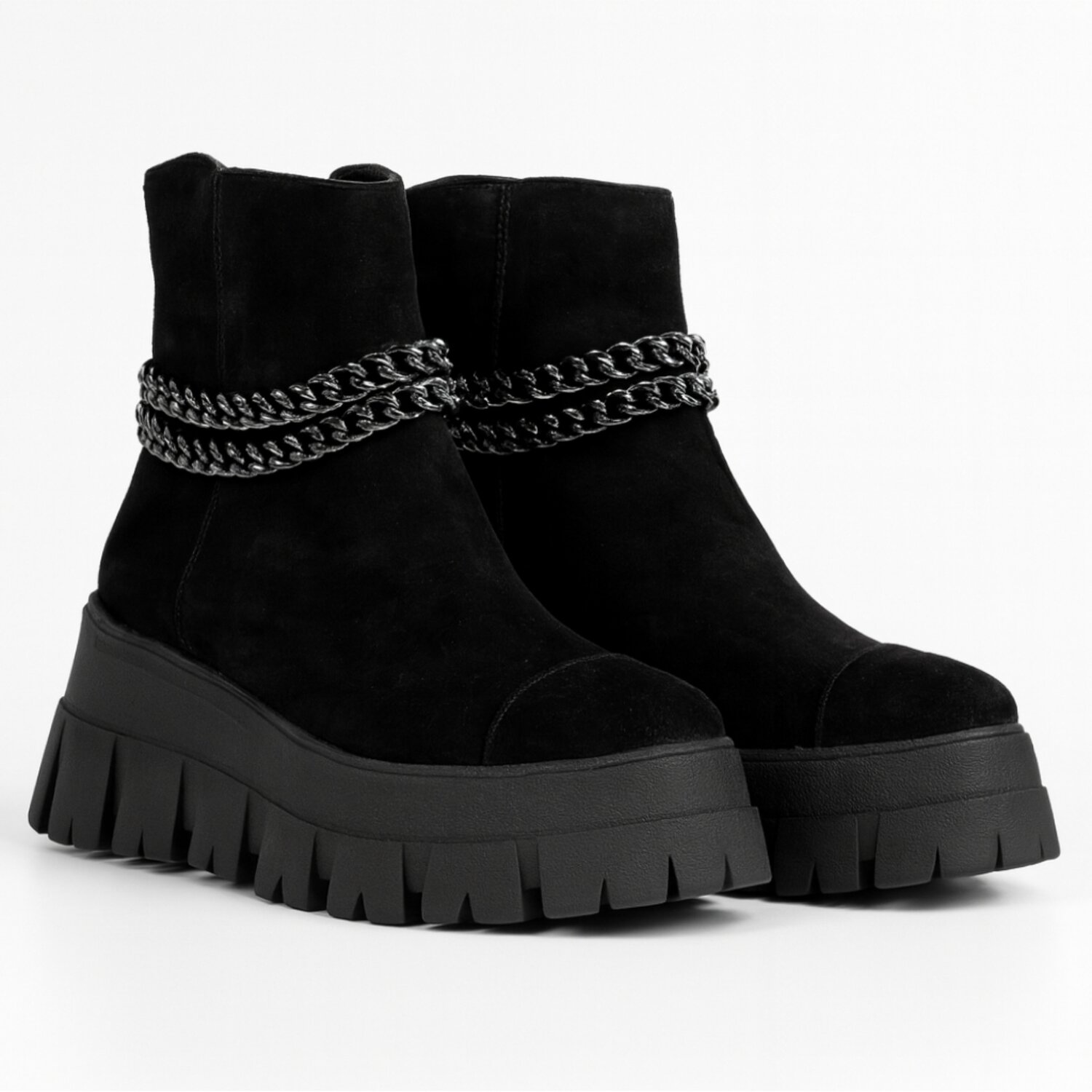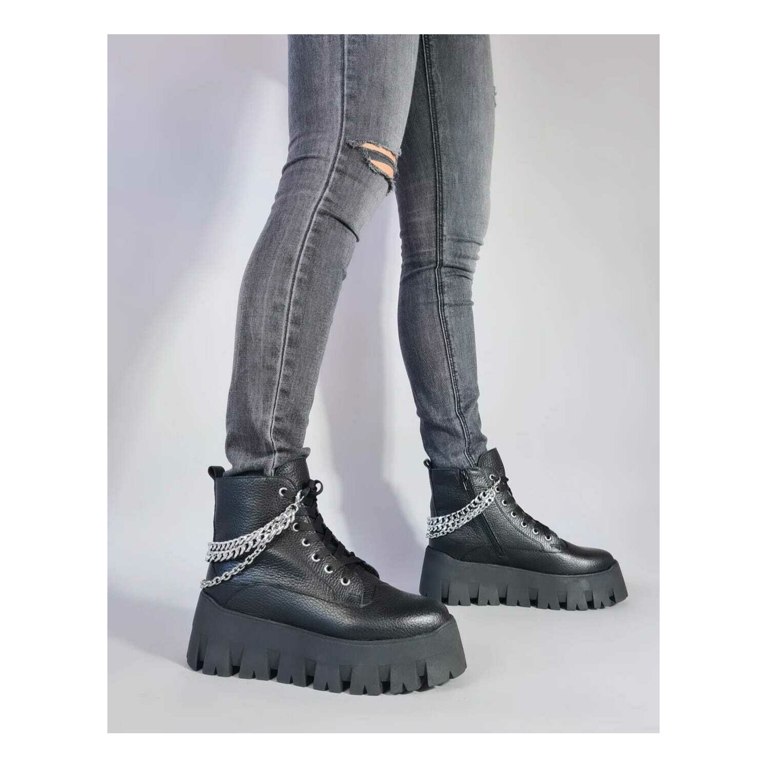 Ghete dama Piele Naturala Negre box cu lant detasabil Joeli