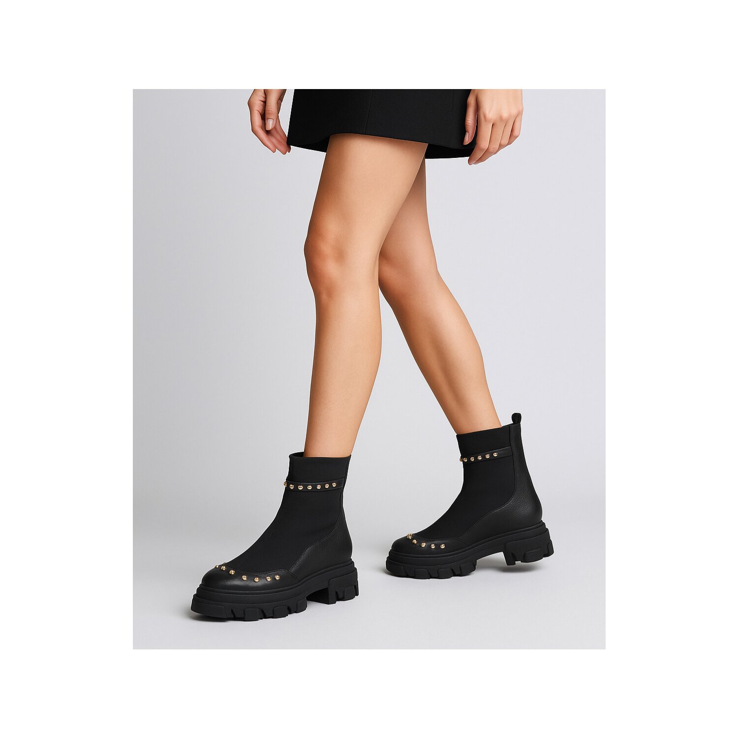 Ghete dama Piele Naturala Negre cu accesorii argintii Steffani