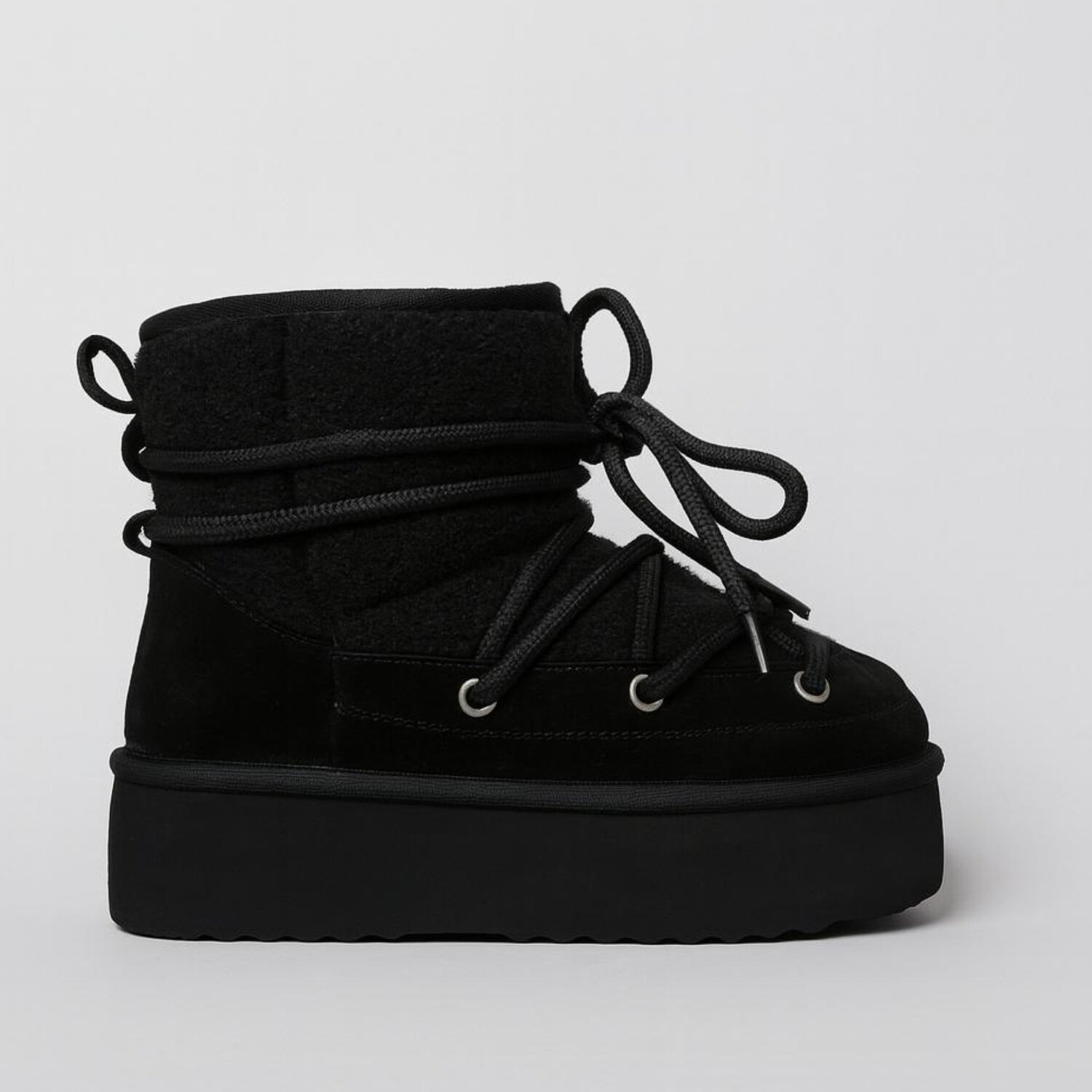 Ghete dama din Piele Naturala Negre cu textil blanita FrostLine