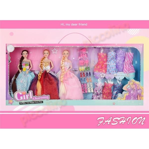 Set 3 papusi elegante cu articulatii mobile, cu haine si accesorii Engros