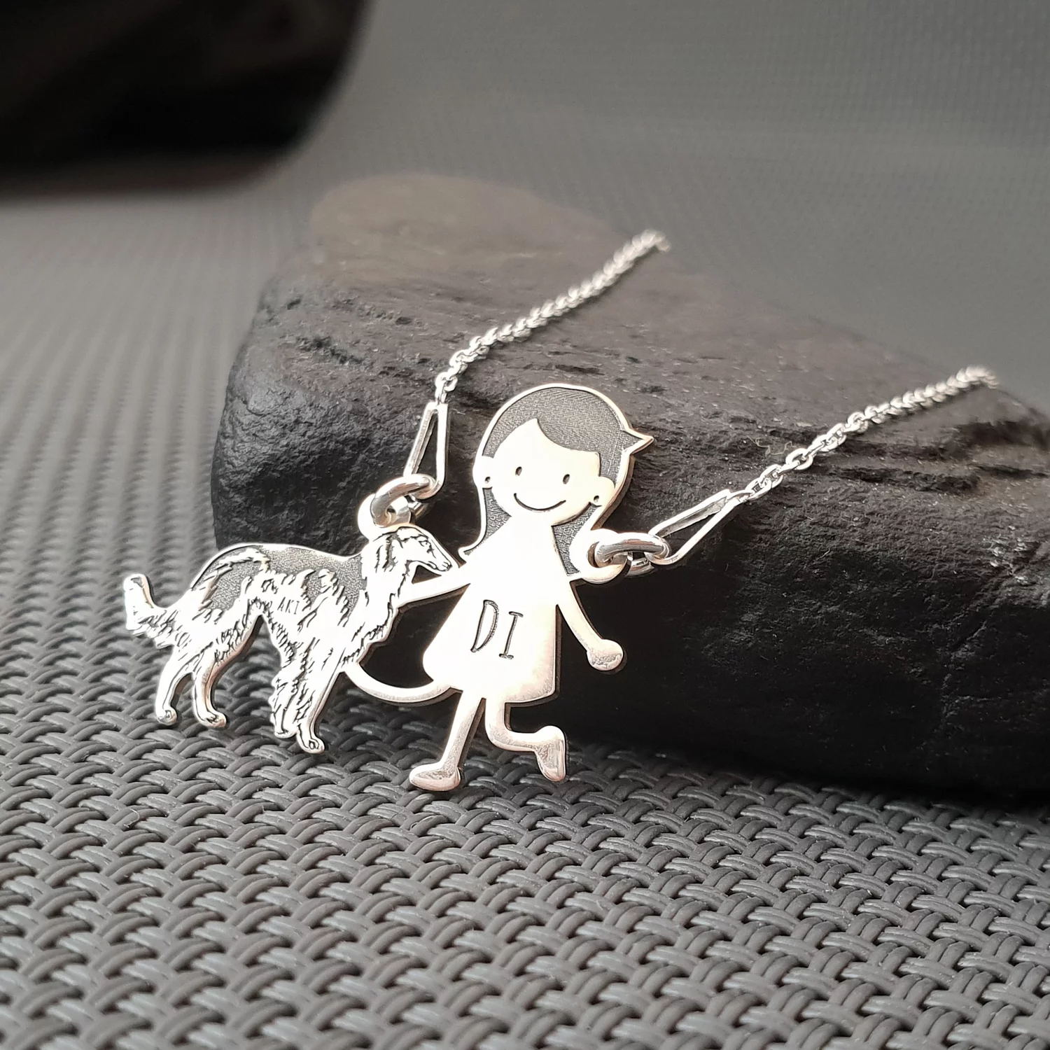 Lantisor Familie - 2 Membri cu Barzoi - Argint 925