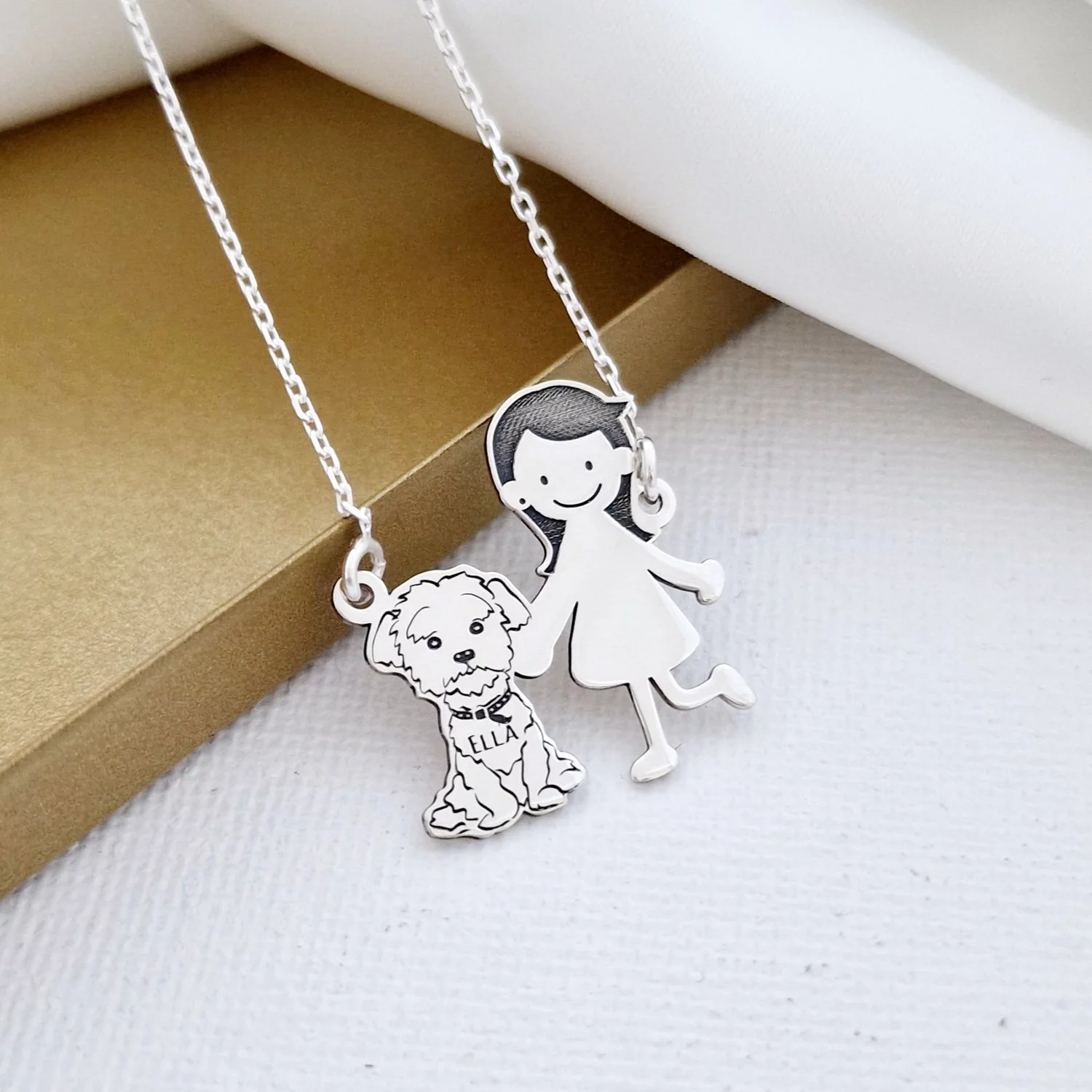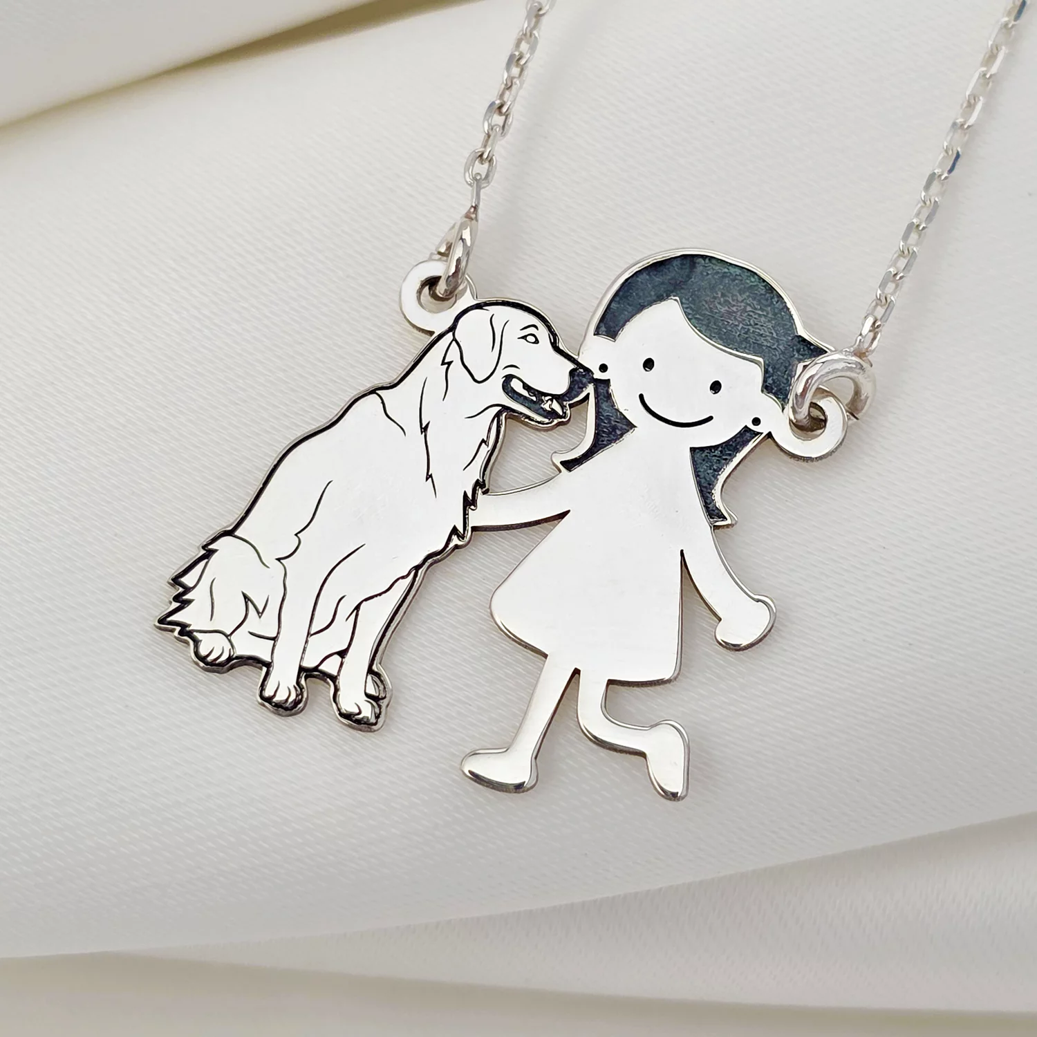 Lantisor Familie - 2 Membri cu Golden Retriever - Argint 925