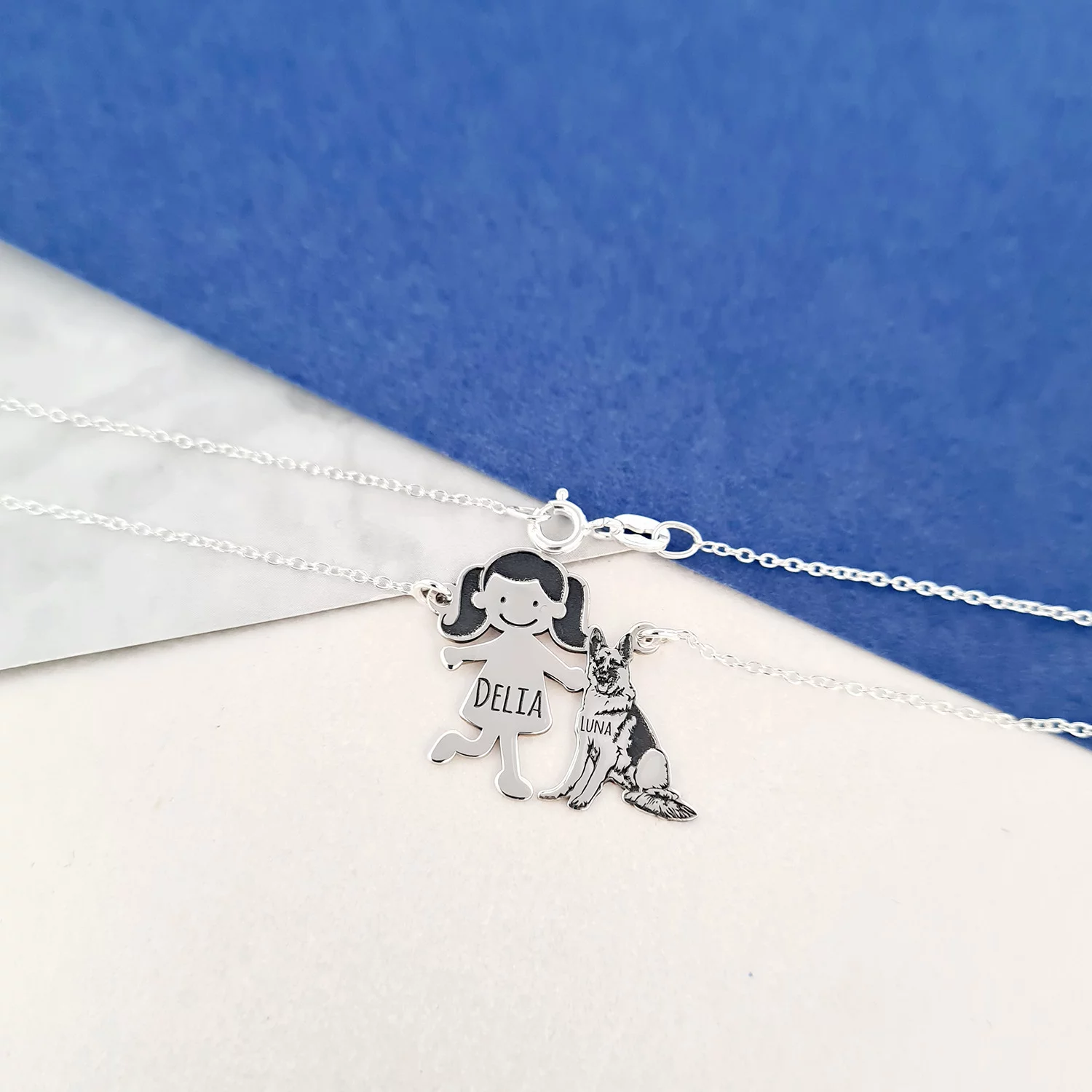 Lantisor Familie - 2 Membri cu Ciobanesc - Argint 925