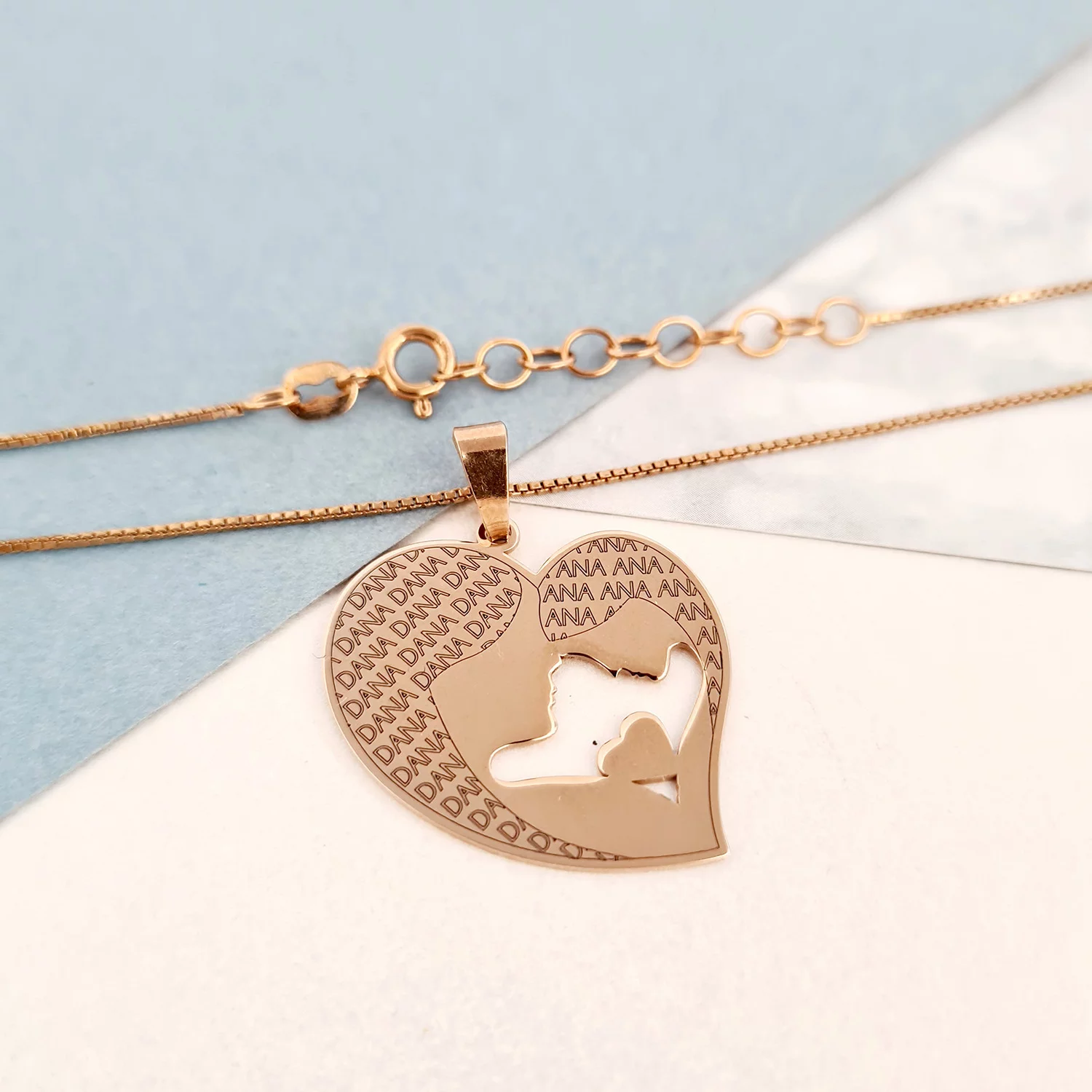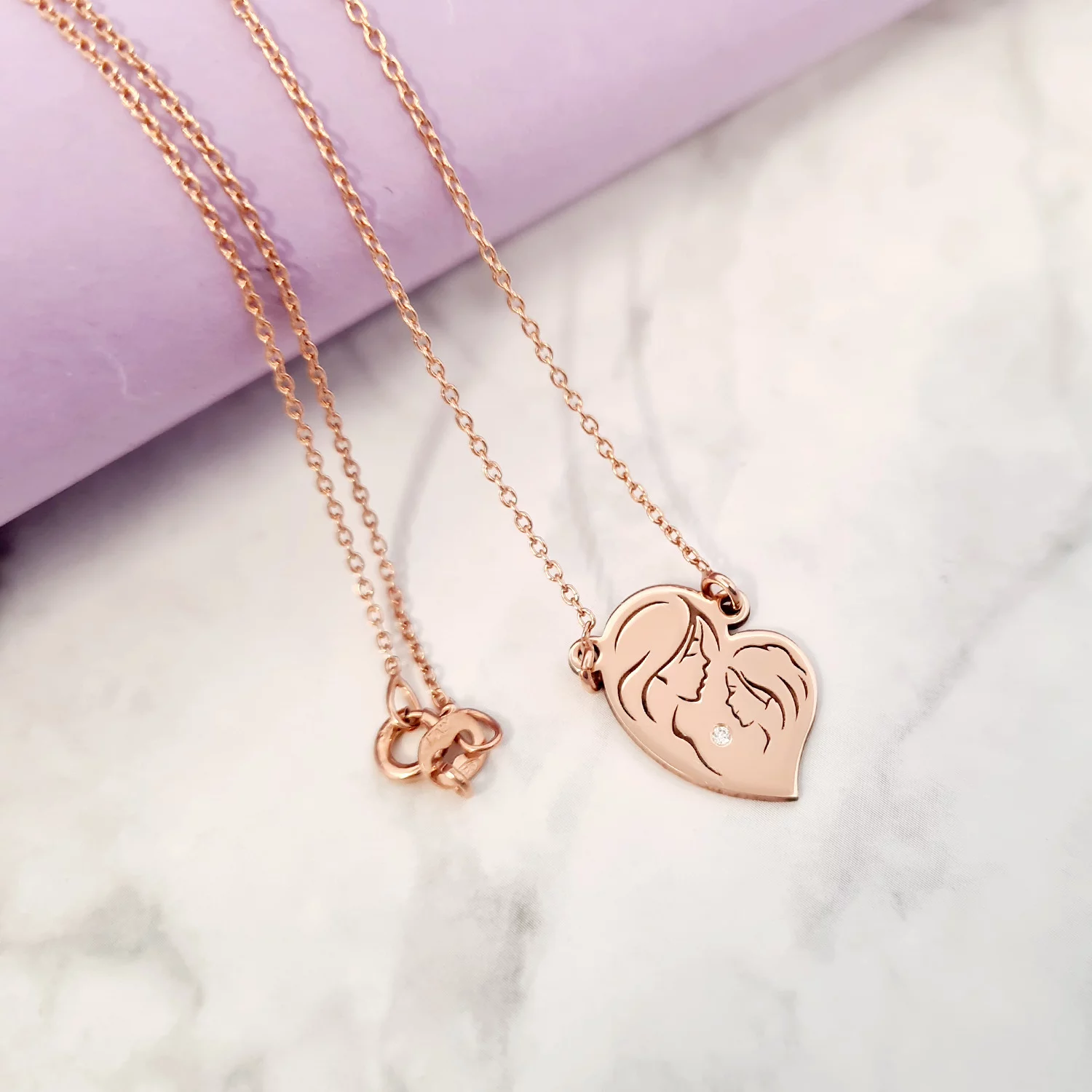 Lantisor Inima - Mama si fiica - Argint 925 placat cu Aur roz 18K