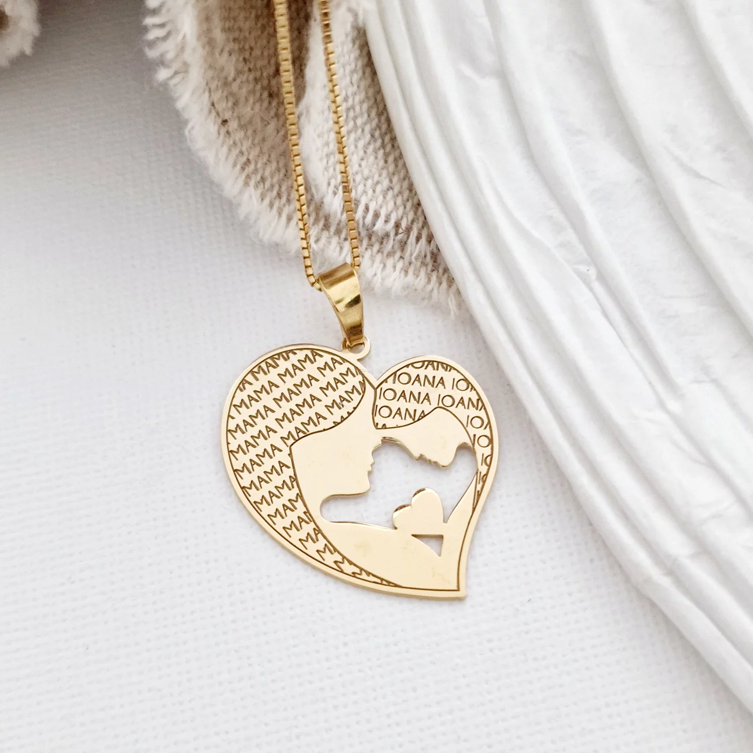 Lantisor Inima - Mama si fiica - Argint 925 placat cu Aur galben 18K