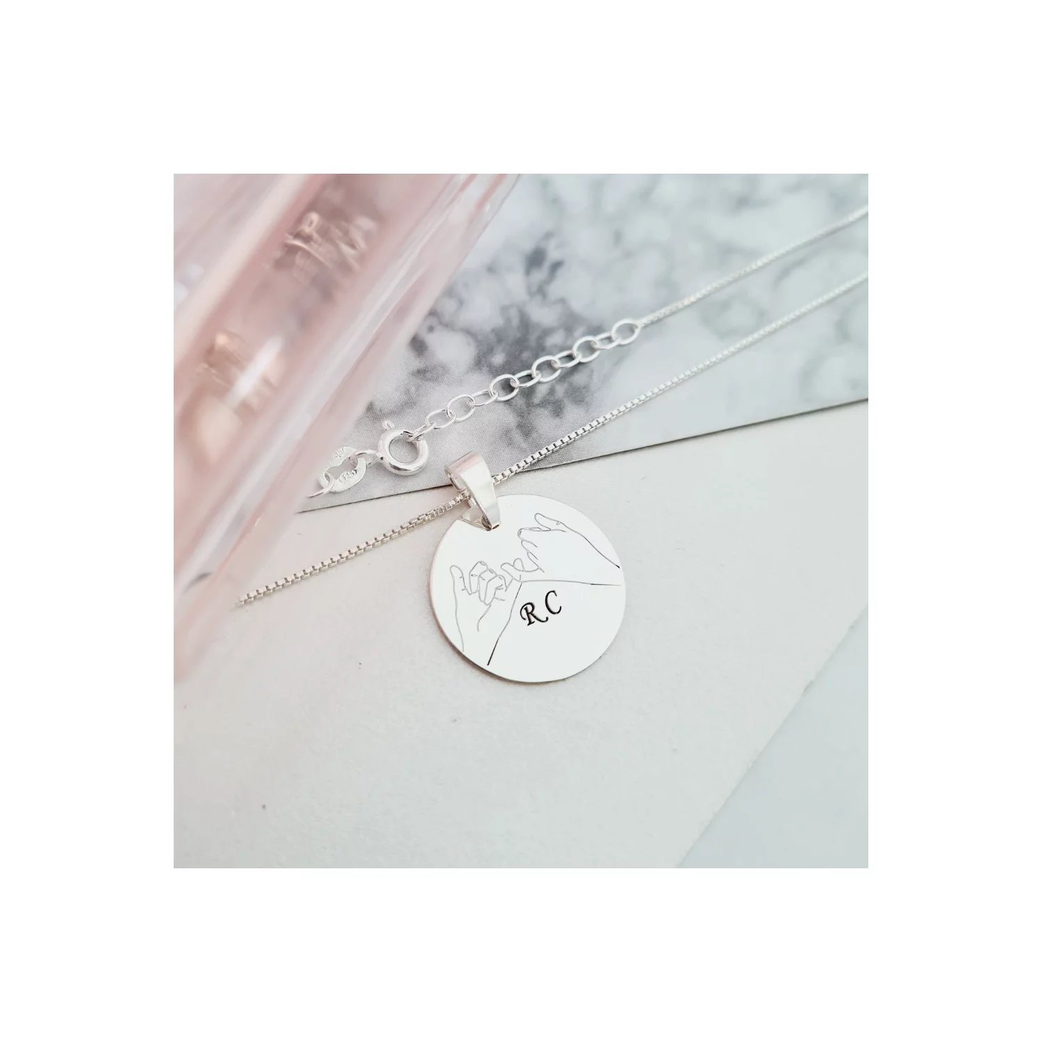 Lantisor cu pandantiv banut cu 2 maini gravate - Promisiune - Pinky promise - Argint 925