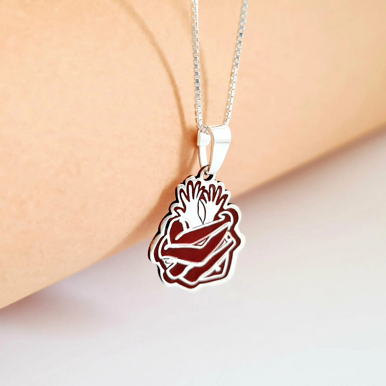 Lantisor personalizat si decorat cu email colorat - Inima din maini impletita - Argint 925