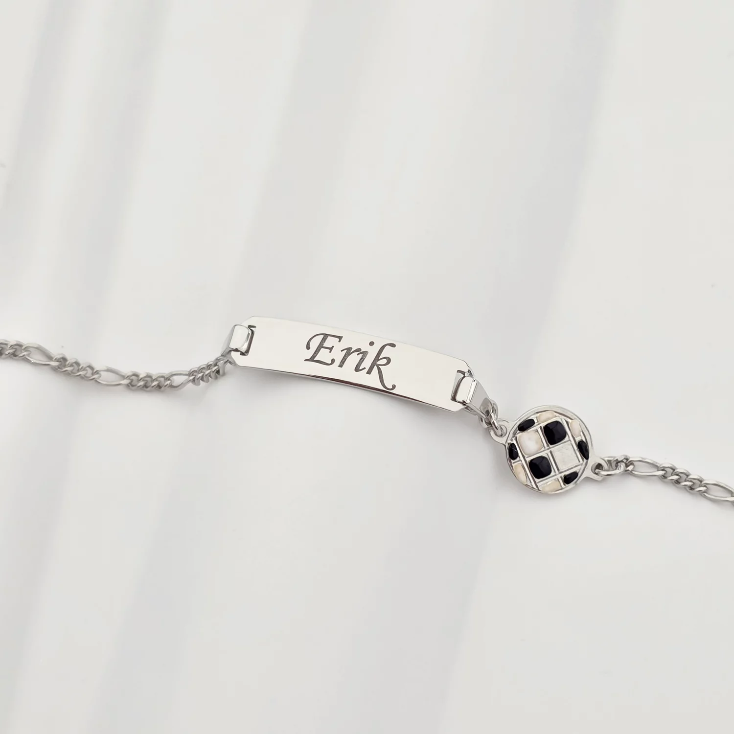 Bratara bebe - Placuta cu nume - Simbol minge de fotbal si lantisor - Argint 925