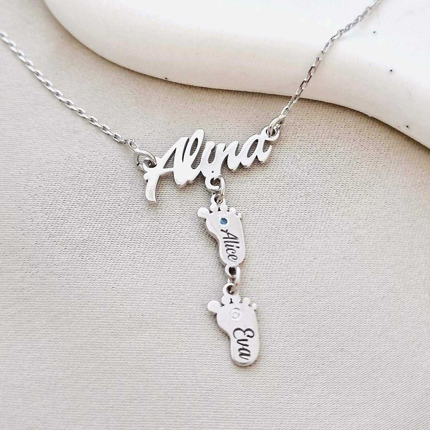 Lantisor cu doua Diamante Naturale - Pandantiv nume si 2 picioruse - Argint 925 Rodiat