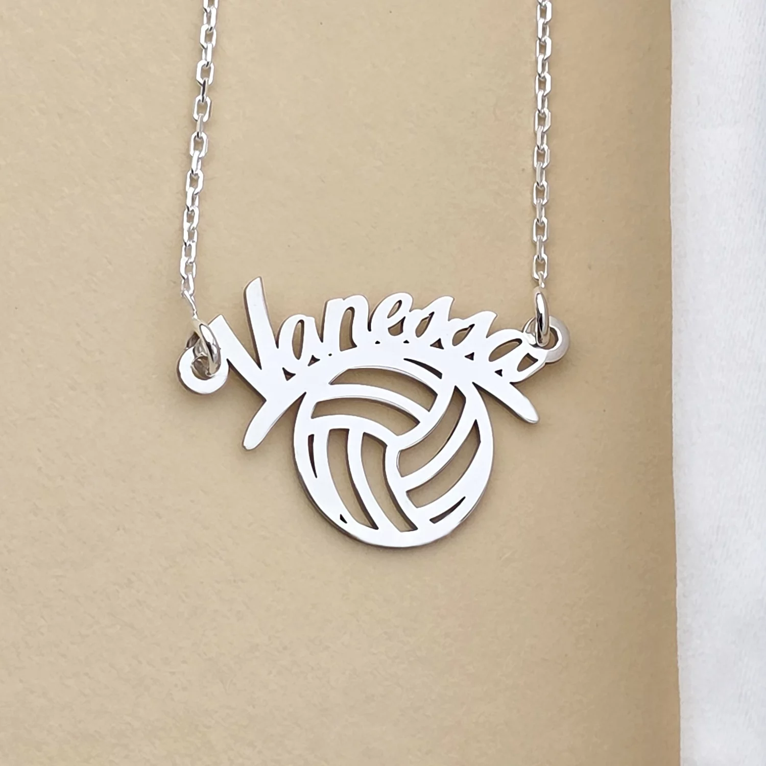 Lantisor cu pandantiv personalizat - minge de volei si nume decupat - Lant link - Argint 925