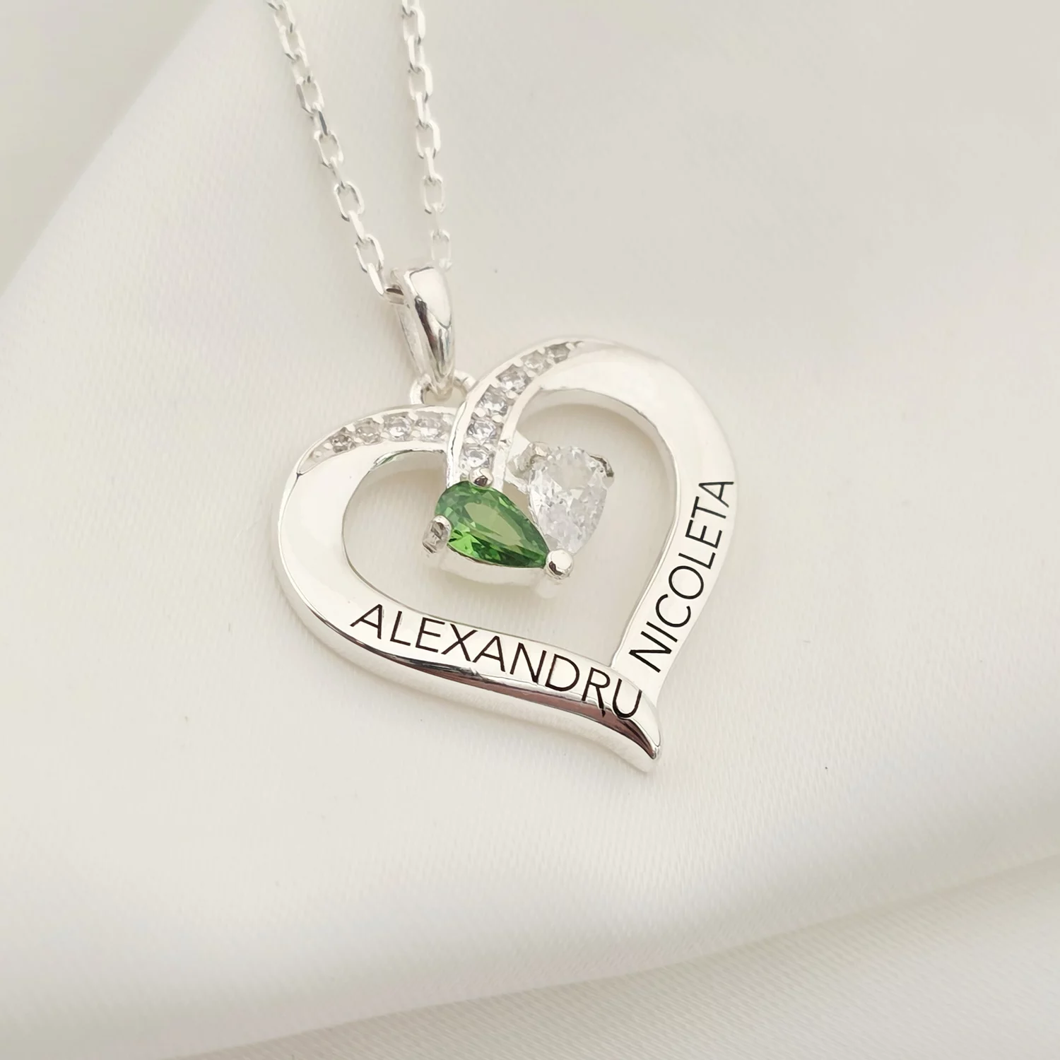 Lantisor Inima cu Poveste - 2 nume si Cristale Zirconia - Argint 925