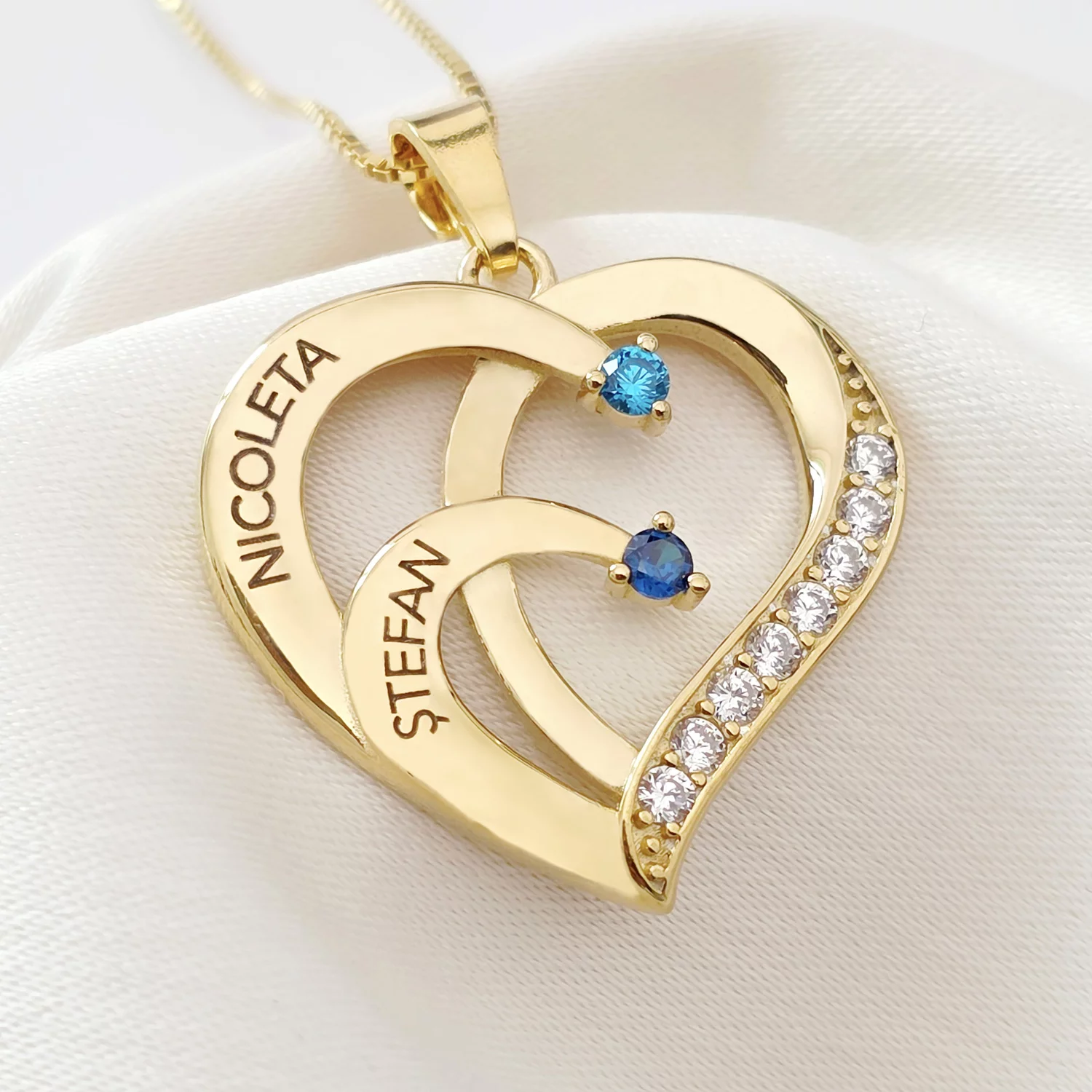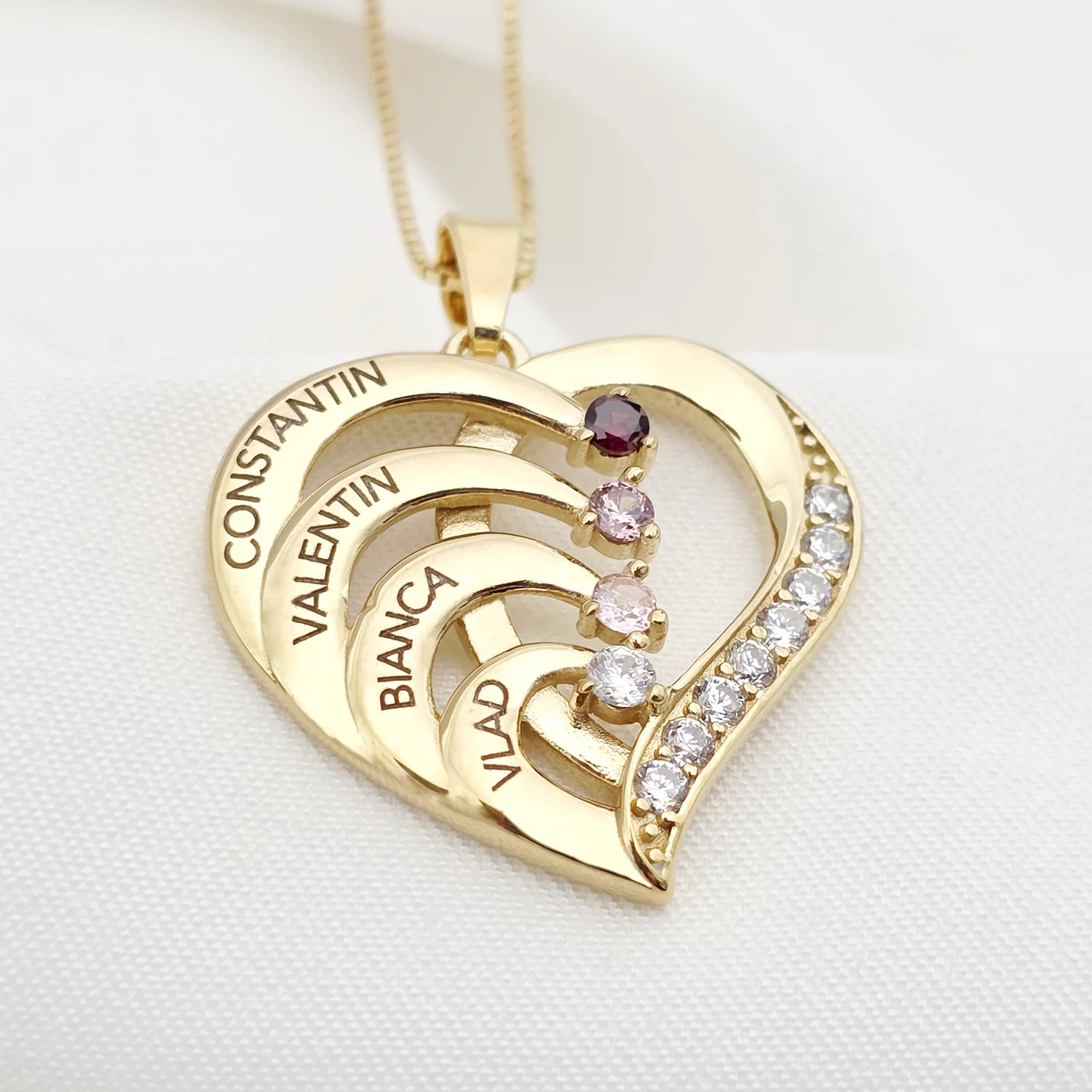 Lantisor Inima cu Poveste - 4 nume si Cristale Zirconia - Argint 925 placat cu Aur 18K