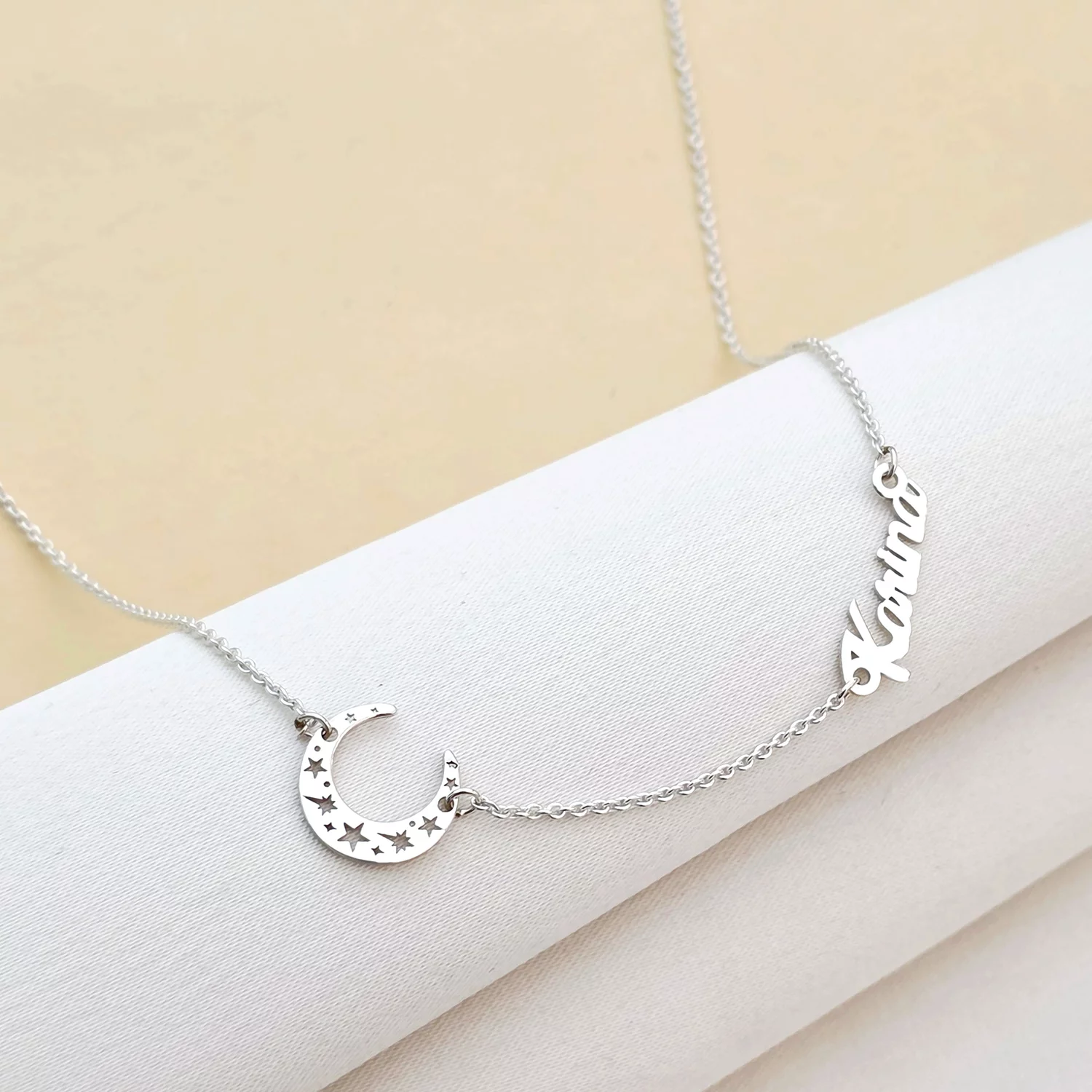 Lantisor personalizat cu Nume si pandantiv lateral Semiluna- Argint 925