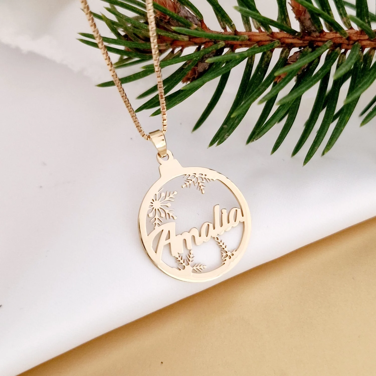 Lantisor festiv - Globul Fermecat - Pandantiv cu fulgi si nume - Argint 925 placat cu Aur Galben 18K