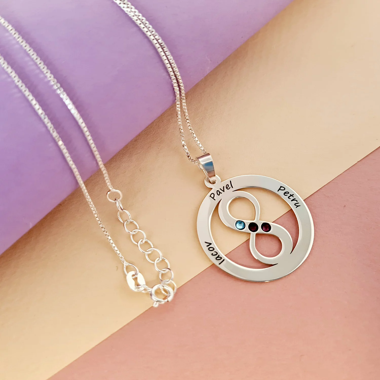 Lantisor Iubire Infinita - 3 nume - Argint 925 si cristale Swarovski