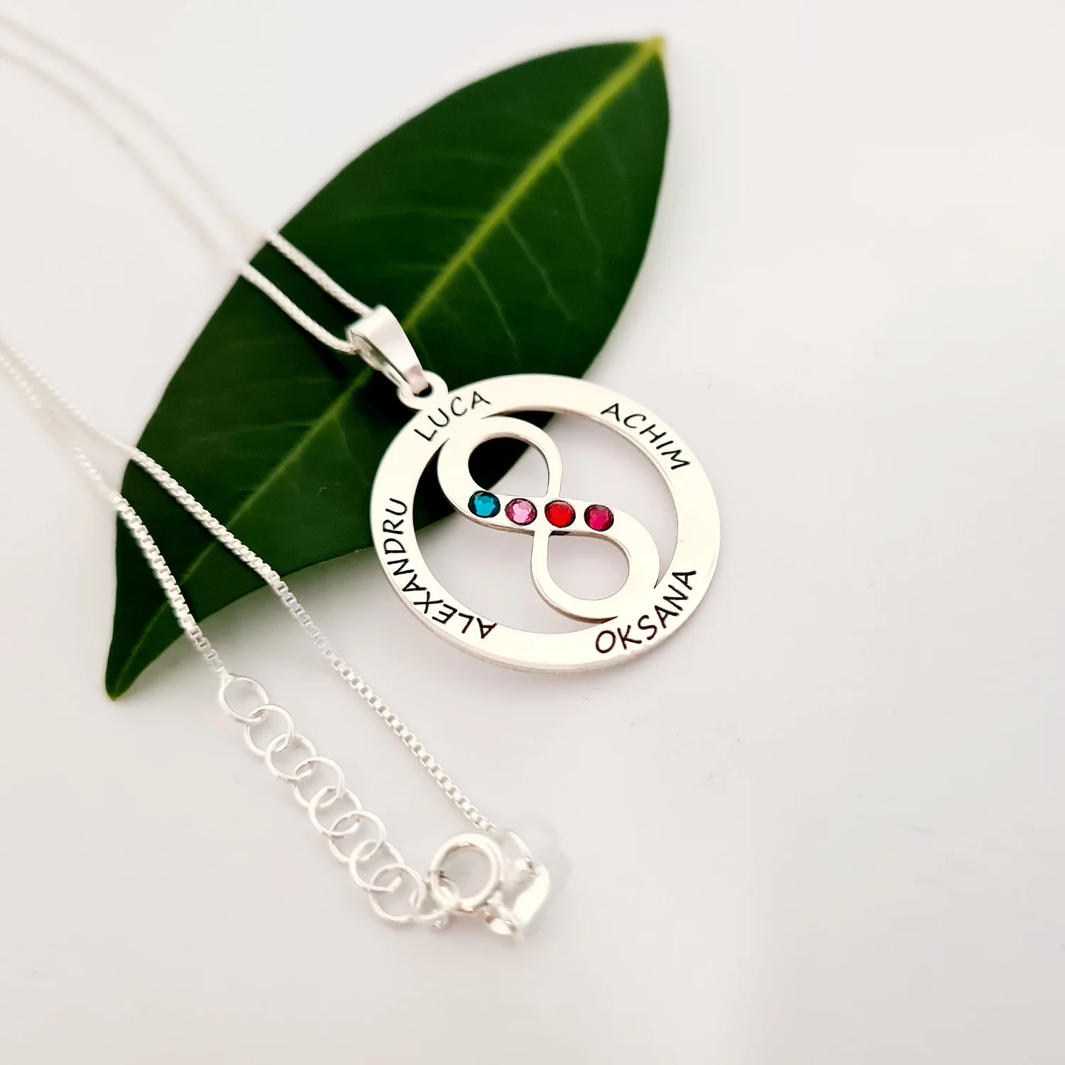 Lantisor Iubire Infinita - 4 nume - Argint 925 si cristale Swarovski