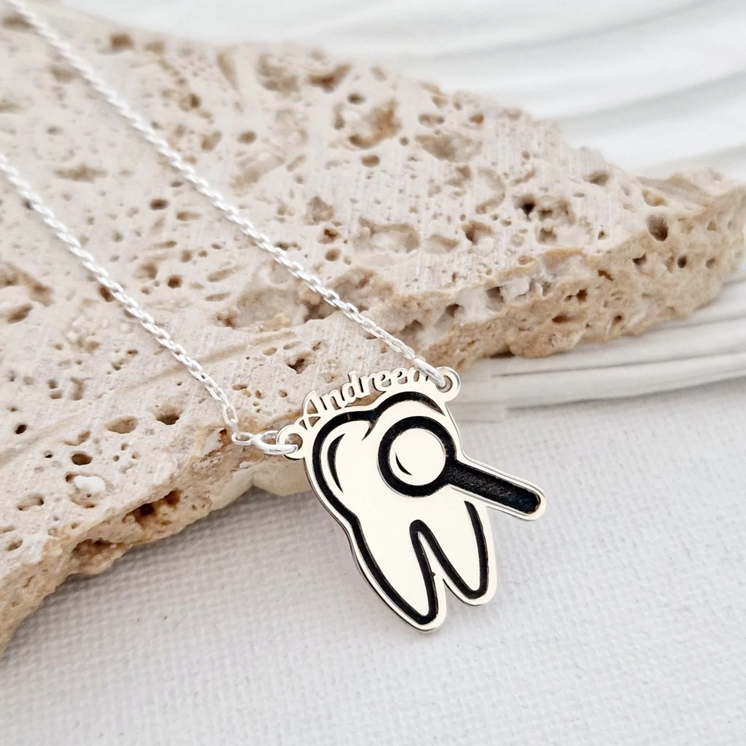 Lantisor personalizat - Pandantiv dinte cu nume - Argint 925