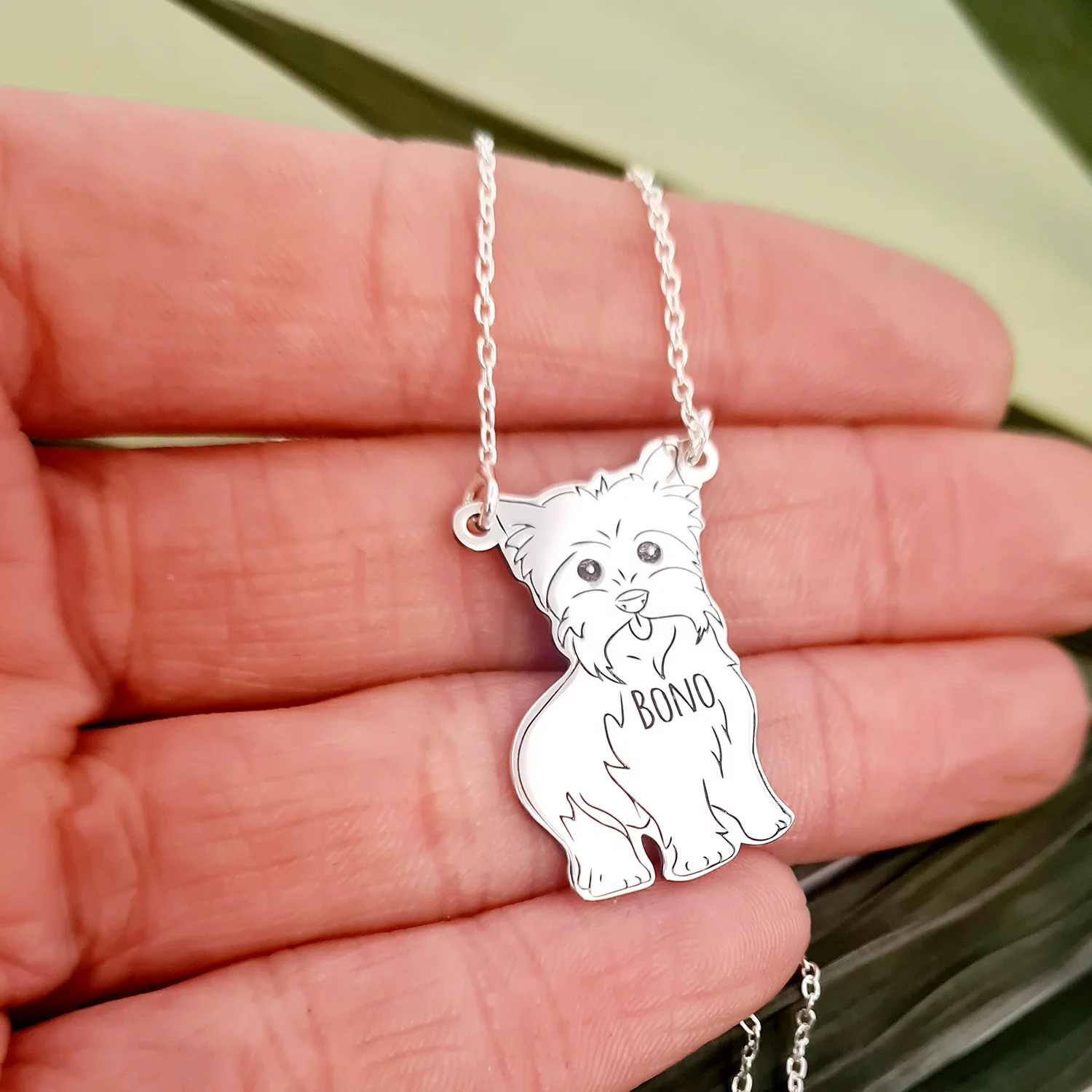 Lantisor personalizat - Pandantiv Yorkshire cu nume - Argint 925