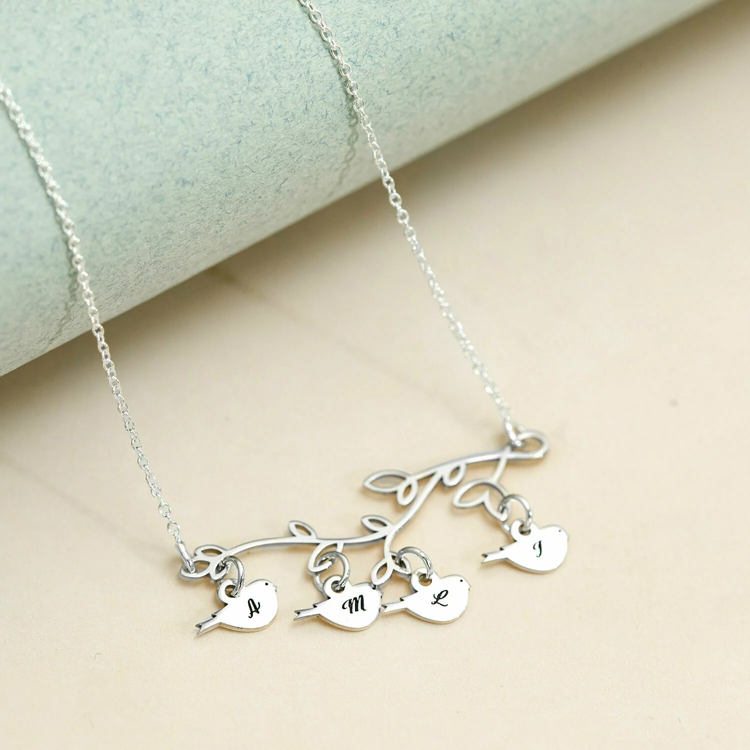 Lantisor personalizat - Ramura cu porumbei - Argint 925