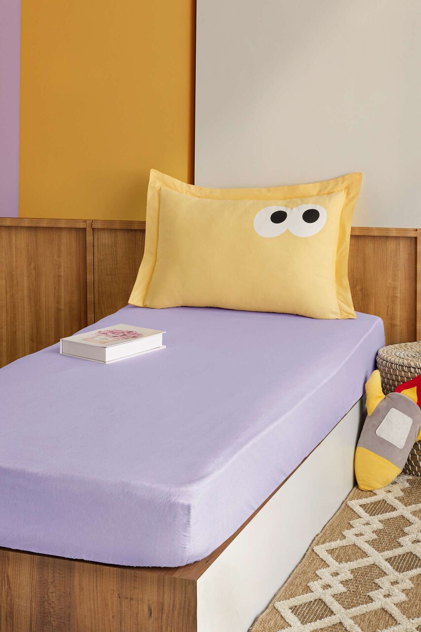 Set de pat pentru o persoana (cearceaf cu elastic si perna) 2 piese, Lessentiel Maison, Funny, Liliac / Galben