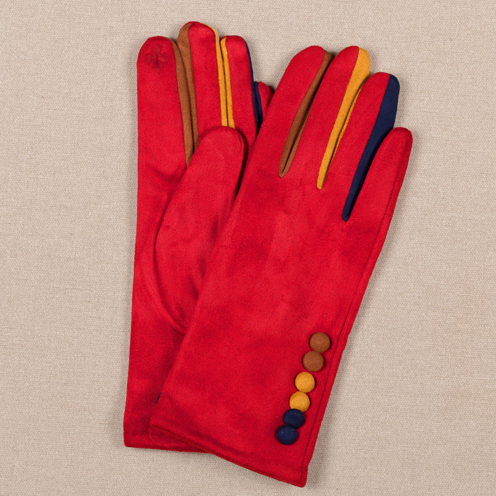 Manusi dama rosii clasice cu nasturi colorati